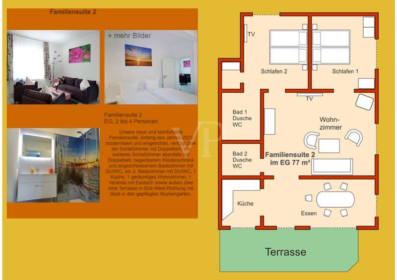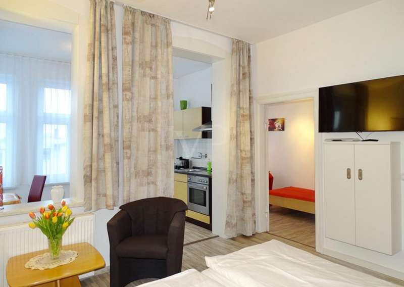 This completely modernized historic villa dating back to 1898 has 10 vacation apartments of various sizes, which are ideal for relaxing vacations as a couple, with the whole family or as a single traveller. The pretty smaller vacation apartments for 1 to 2 people, a cozy maisonette apartment with two bedrooms for up to 4 people and the two very spacious family suites on the first floor with a large terrace are very popular with vacation guests. Some of the vacation apartments have a pull-out sofa bed in the living area so that an additional person can also be accommodated. The vacation home with its historic ambience is one of the most popular and most booked accommodations in the Baltic seaside resort.