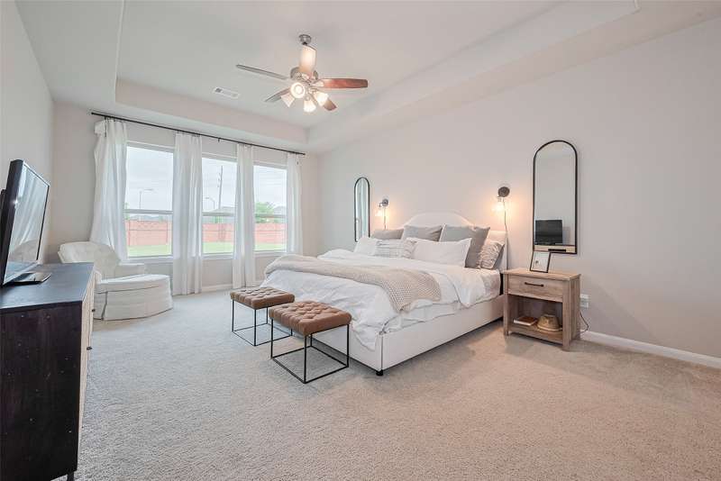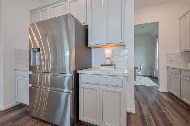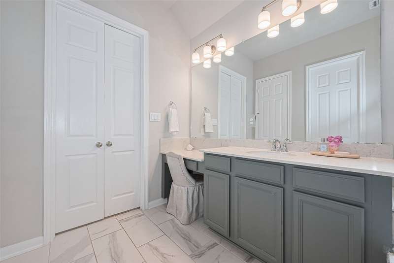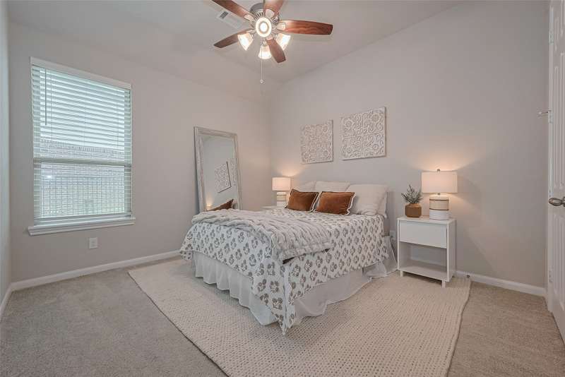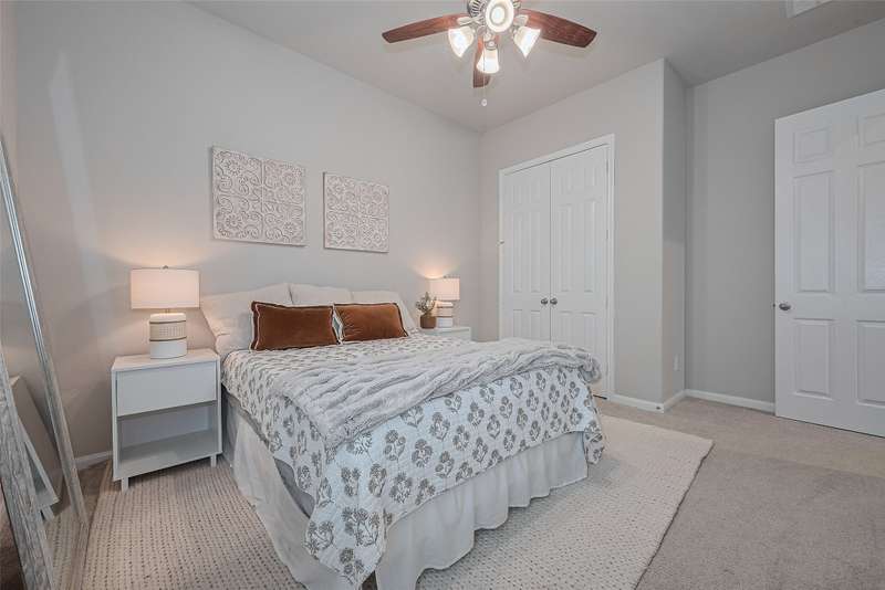 Beautifully situated on an oversized cul-de-sac lot in Fort Bend County, this property offers upgraded comfort & style in a prime Richmond location. This 3/4-bedroom, 2-bath home is just a short walk from the community lake & recreation center. Inside, enjoy luxury vinyl plank flooring by Shaw, 8’ doors throughout, & a spacious open floor plan. The kitchen features 42” upgraded cabinets, quartz countertops, Moen fixtures, & Whirlpool stainless steel appliances. The extended primary suite provides a relaxing retreat, while additional highlights include vaulted ceilings quartz surfaces throughout, a custom guest closet (2022), & new wall molding in the guest bedroom (2024).The versatile bonus room is perfect for a home office, gym, flex space, or whatever you imagine. Located in a well-maintained subdivision with scenic views of the community lake, this home offers a rare combination of space, location, and upgrades. Don't miss this must-see property—schedule your private showing today!