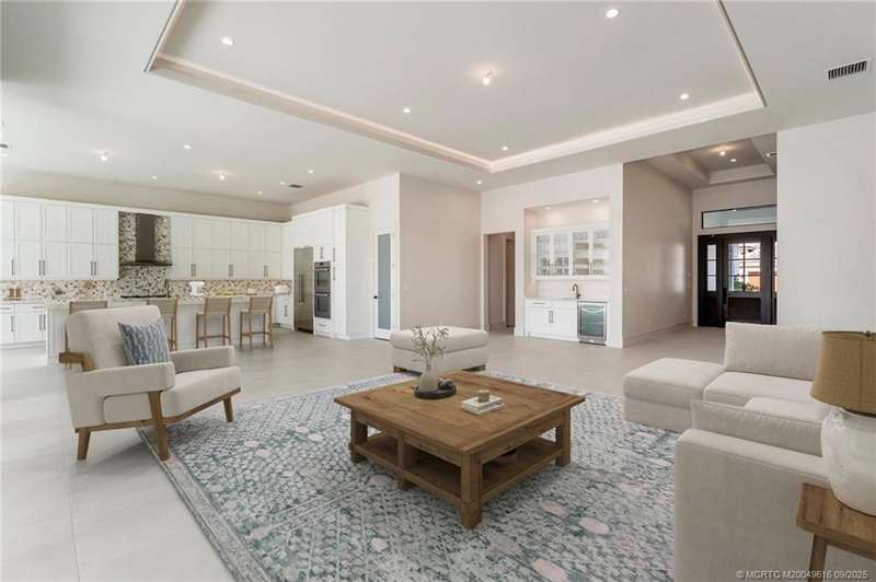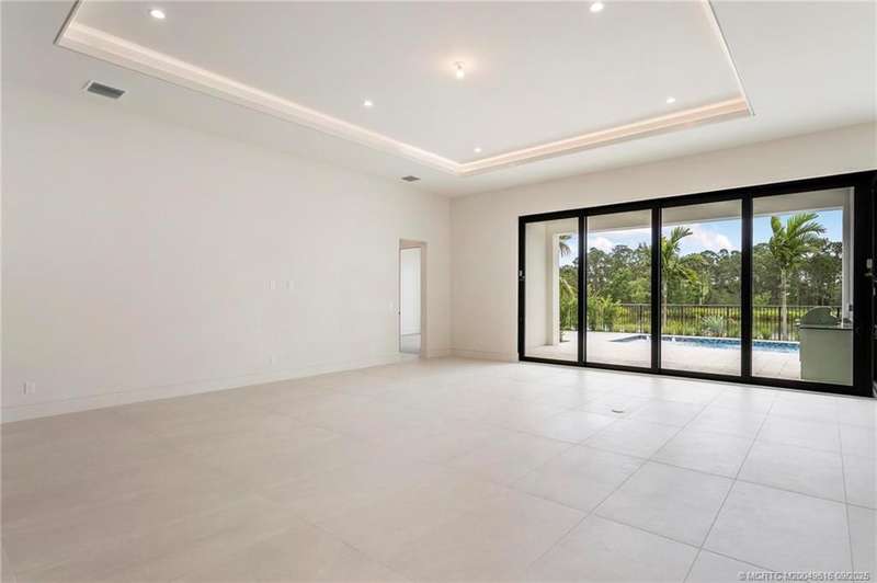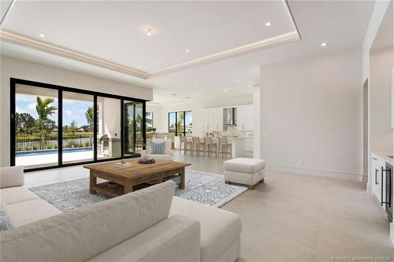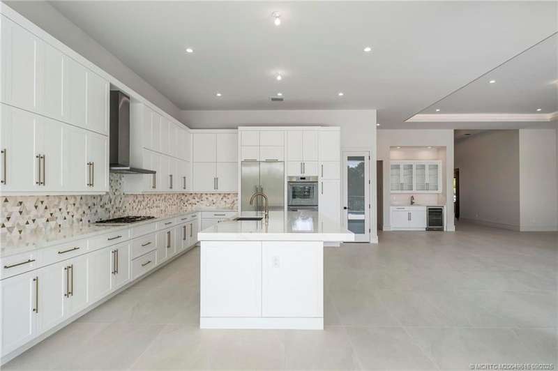 Exper??en??e the ????nn???l? ?f luxurious living with the n?wly ??onstructed Augusta Custom Pool Home by Ecclestone Signature Homes. This exquisite coastal modern residence offers breathtaking water views and is located within the highly sought-after Tesoro Club, a prestigious gated golf community. This expansive one-story home features four bedrooms and 4.5 baths, complemented by a wet bar and a walk-in pantry.The open floor plan is perfectly designed for both relaxation and entertaining. The gourmet kitchen is a chef's dream, featuring high-end Thermador appliances, a generous center island with back-to-back cabinetry, elegant quartz countertops, a full backsplash, and stunning cabinetry. Numerous upgrades are included, with project completion anticipated in early spring 2025.