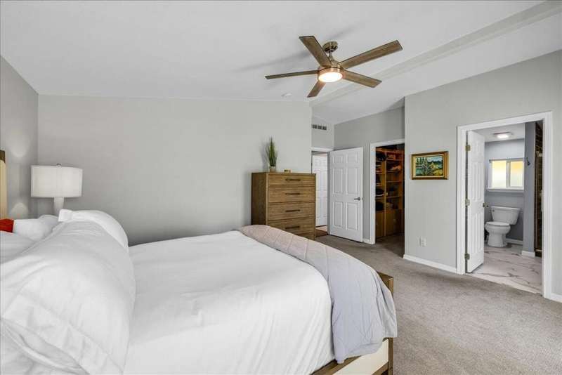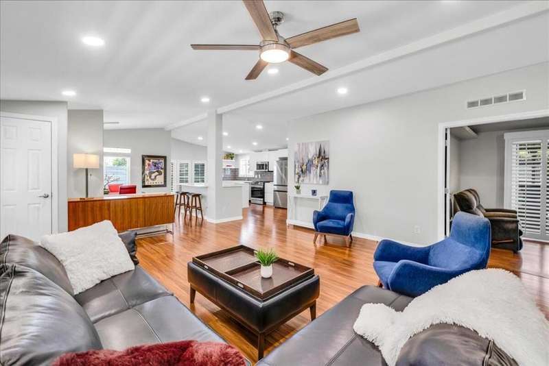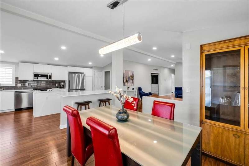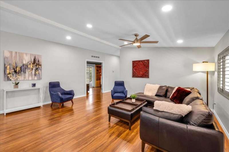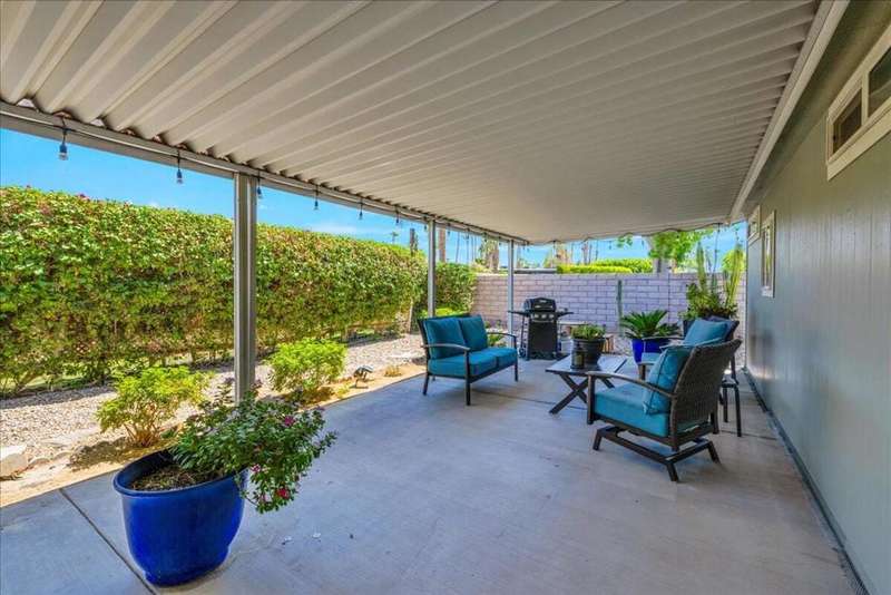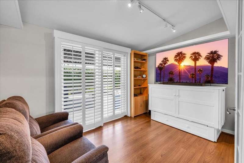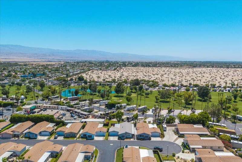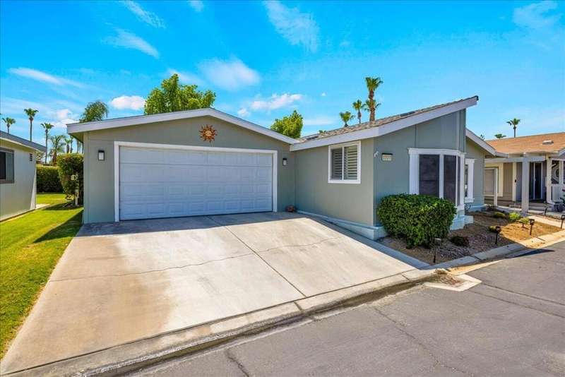 Welcome to this beautifully and thoughtfully updated home, ideal for year-round living or a warm winter getaway. Imagine celebrating holidays in the spacious cook's kitchen featuring dual islands, newer appliances (Sept 2023), and plenty of room for entertaining. The open floor plan includes 3 bedrooms (one currently used as a media room), 2 bathrooms, and a primary suite with a generous walk-in closet. A separate laundry room and direct-access two-car garage add convenience.Enjoy mountain views from the dining area and kitchen, or relax outdoors on the private covered patio. Additional upgrades include a water softener and a new Duration Cool Shingle Roof System installed in Nov 2024.Located in the desirable, newer section of Desert Sands--a secure 55+ community--you'll enjoy resort-style amenities including a clubhouse, fitness center, pool, spa, pickleball, and tennis courts. This owner-occupied community does not permit short-term rentals, ensuring a quiet, neighborly atmosphere. One pet under 21 pounds is welcome.Park approval requires a monthly income of at least 2.5x the $825 space rent. Current property tax is just $89.45 per month ($1,073.40 annually).