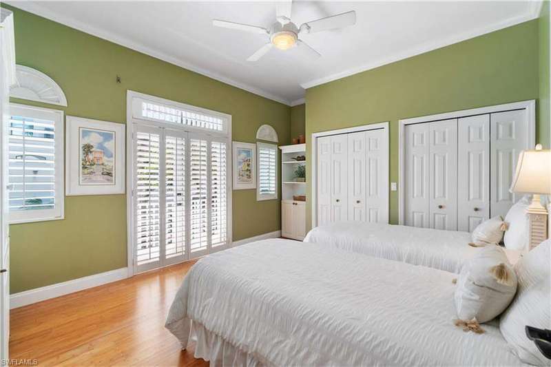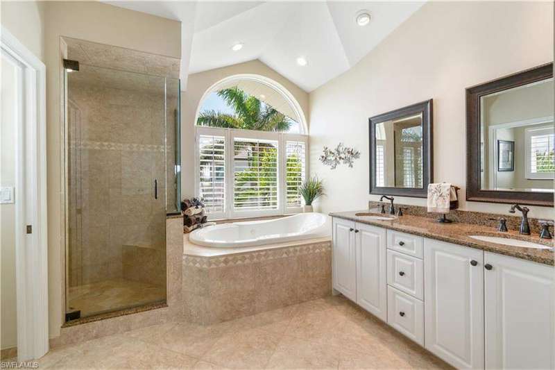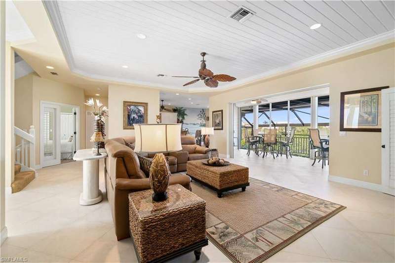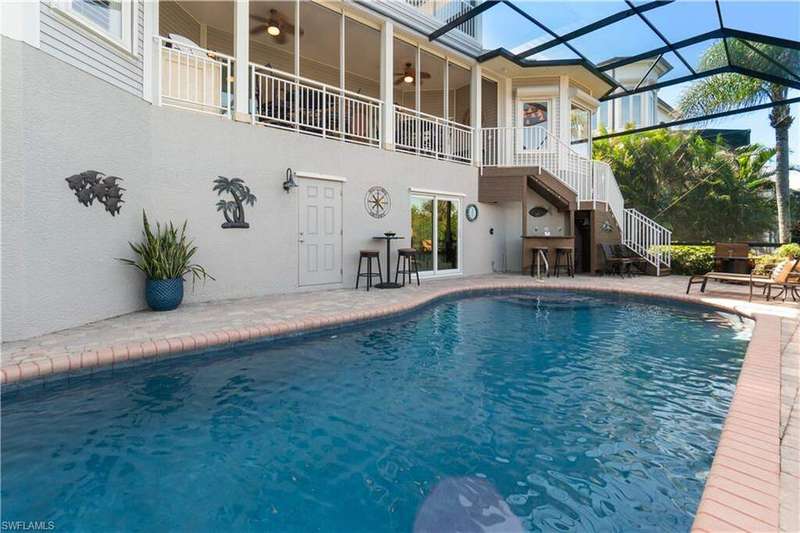 Stunning home nestled on a tranquil peninsula in the double-gated Southport on the Bay in North Naples' premier community of Barefoot Beach offers breathtaking bay views from nearly every window. A true paradise for boaters and beach lovers, this property boasts direct Gulf-access in minutes (no bridges) and is just a short 5-minute walk to the pristine shores of Barefoot Beach. Designed for the ultimate waterfront lifestyle, this home features a private boat dock, dual boat lifts with 16,000 lb and 10,000 lb capacities, and a dedicated fish cleaning station for avid anglers. Inside, you'll find 4 spacious bedrooms, tile flooring, wood flooring (Bamboo), and gorgeous wood-paneled ceilings. The home is equipped with brand-new hurricane impact windows (2025), hurricane shutters, new hurricane garage doors (2022), new HVACs, new water heater, and offers a dedicated space to add an elevator. Additional features include a versatile ground-floor flex space and a newly epoxied garage that can accommodate 4+ cars. Outside, step into your own outdoor haven, complete with a summer kitchen ideal for al fresco dining while soaking in breathtaking bay views. Perfect for entertaining, the expansive lanai features a brand-new picture screen enclosure, a newly resurfaced pool, an outdoor shower, stone waterfall, and a bar area. The beautiful chef's kitchen features white cabinetry, soft close cabinets, granite countertops, stainless steel appliances, an eat-in area, and a breakfast bar for casual dining. The primary suite serves as a private retreat with its own balcony overlooking the water, and a spa-like bathroom complete with dual vanities, a glass-enclosed shower, and a separate jetted tub. Conveniently located near fine dining, RSW Airport, Mercato, and Waterside Shops, and just 15 miles from the renowned Fifth Avenue in Naples, this home is a true gem in the heart of Southport in Barefoot Beach.