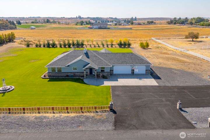 Spacious Country Living- Welcome to your perfect blend of space & comfort. Single-level 4-bed, 2-bath home sits on a flat and usable 2-acre lot, offering endless possibilities. Whether you're dreaming of building a shop or enjoying the open space, this property has the room to make it happen. Inside, you'll find a functional floor plan w/ generous living spaces, a well-equipped kitchen with granite counters, tile flooring, double oven, great work flow, & comfortable bedrooms. The living room has a built in entertaining bar and showpiece fireplace. Sliding glass to the covered patio. Outside, there’s ample parking for RVs/trailers, underground sprinkler system, water rights, plenty of room to expand or customize to fit your lifestyle.