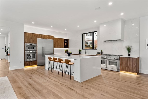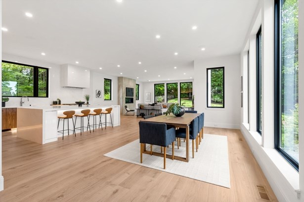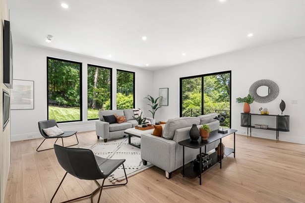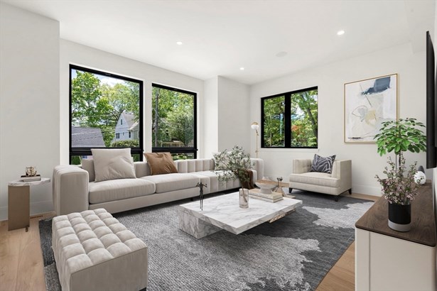 Experience contemporary elegance in this stunning new build featuring clean lines and an open-concept layout. The main level impresses with soaring ceilings, a dramatic staircase framed by a 2 story wall of windows, and a chef’s kitchen with quartz counters, high-end appliances, and sleek cabinetry. The fireplaced great room allows seamless indoor-outdoor living with expansive windows overlooking the private yard. A first-floor en-suite bedroom and a flexible office/studio space add convenience. Upstairs, the luxurious primary suite offers treetop views, a spa bath, great closets plus three additional en-suite bedrooms. The lower level includes the 6th bedroom with ensuite bath and a bonus room perfect for gym/media room/playroom and ample storage. Bonus 3-car garage with epoxy floor and wet bar. Enjoy the convenience of life on Lexington's Prospect Hill - walk to K-12 schools, shopping, dining, public transportation with easy highway access nearby.