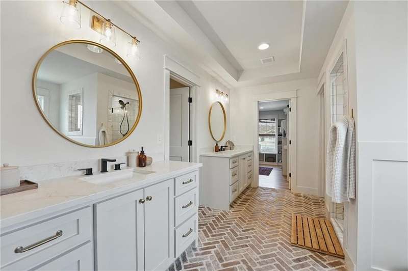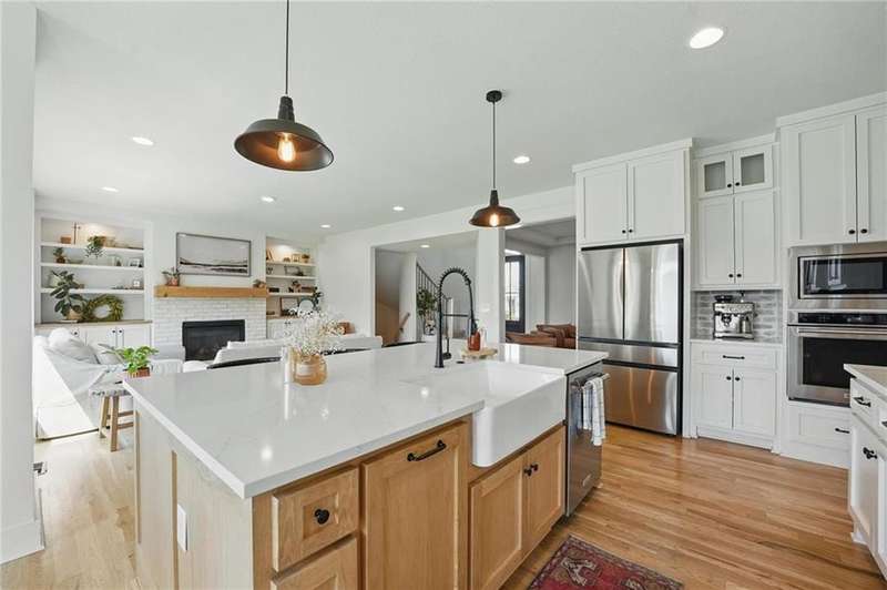 Better than new in Stonebridge Trails! This 6 bedroom 4 1/2 bath Stunner is the one you've been waiting for! Step into the Absolutely Beautiful open main floor with kitchen with eat in breakfast nook, sitting room, living room plus a bedroom/office, bathroom and mudroom area. Upstairs boasts 4 bedrooms, 3 full baths and Laundry Room. The finished basement offers and huge entertaining space plus a true bedroom and bath and still has room for storage. Check out all these upgrades!! Board and Battan trim detail in upstairs hallway, two upstairs bedrooms, and main floor bath. Brick flooring in Primary bath and laundry room, Custom ceiling treatments in kitchen nook and primary bedroom. Custom brick backsplash with German Schmear treatment. Living room built ins. Wood kitchen island. Quartz kitchen countertops. Additional built-ins in sitting room. Upgraded light fixtures over kitchen island, kitchen nook, and main entry. Extended patio. Cedar columns on front porch. White oak hardwoods with water-based clear coat. Farmhouse clay sink. Inground sprinkler system. Everything has been done for you! Move right in and enjoy this Amazing Resort Style Neighborhood with 4 Zero Entry Pools, 2 Clubhouses, Workout facility, Playground, Sport Courts, Volleyball area and Paved Walking Trails.