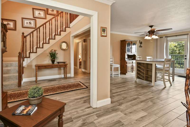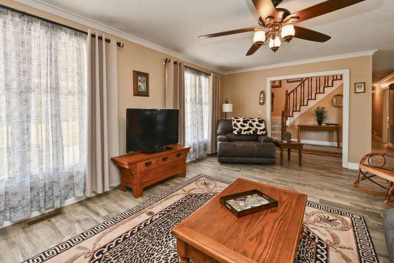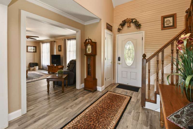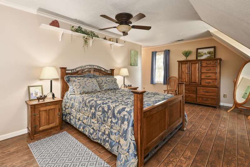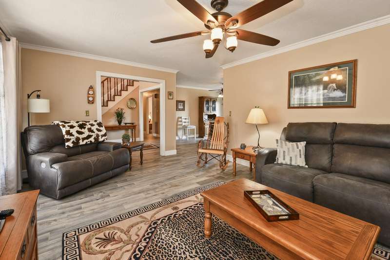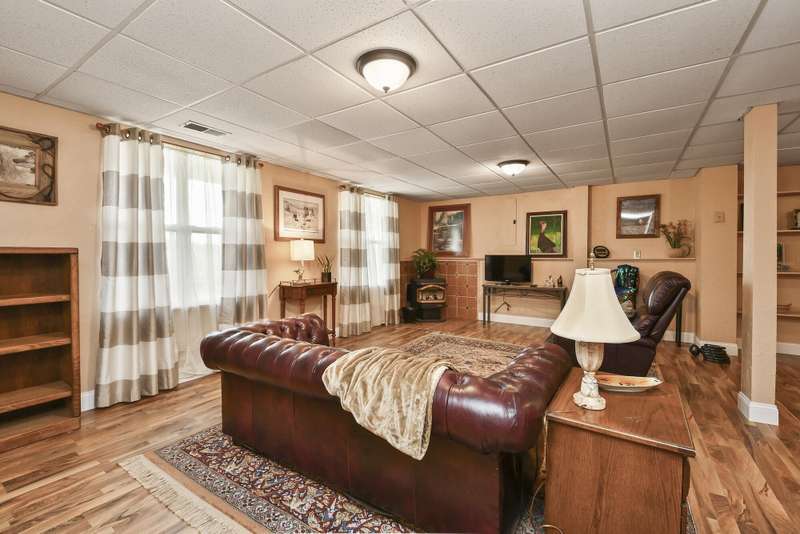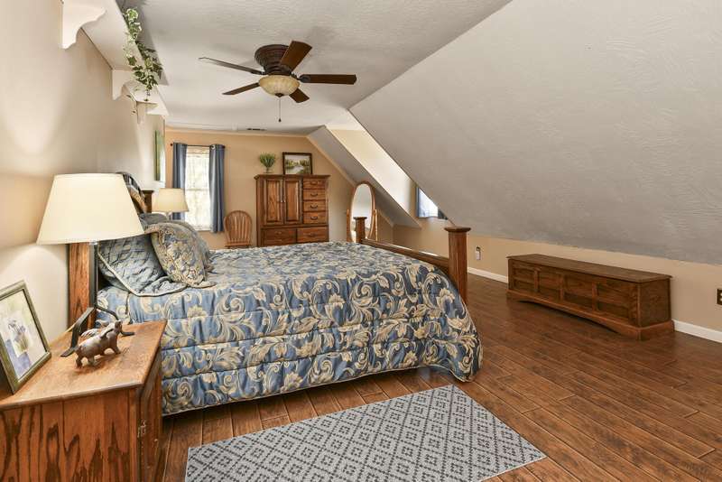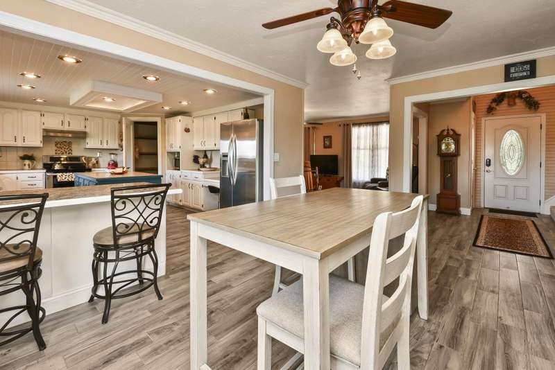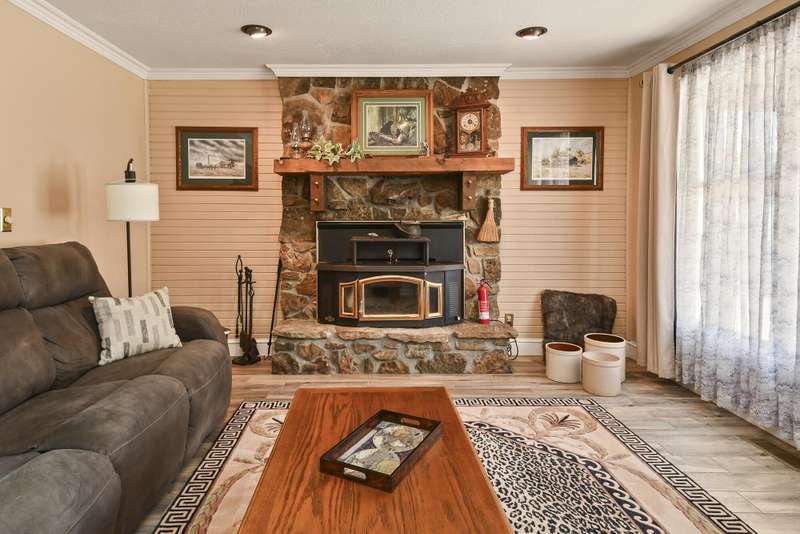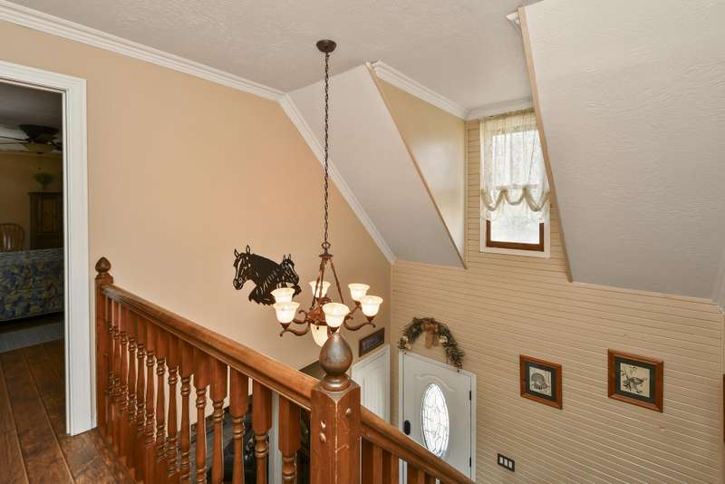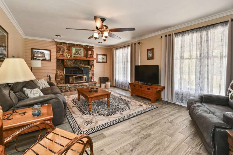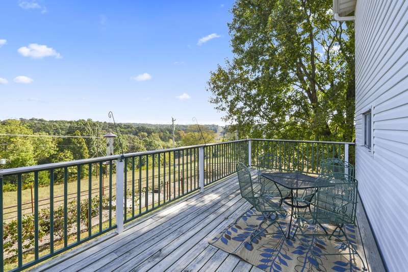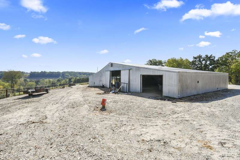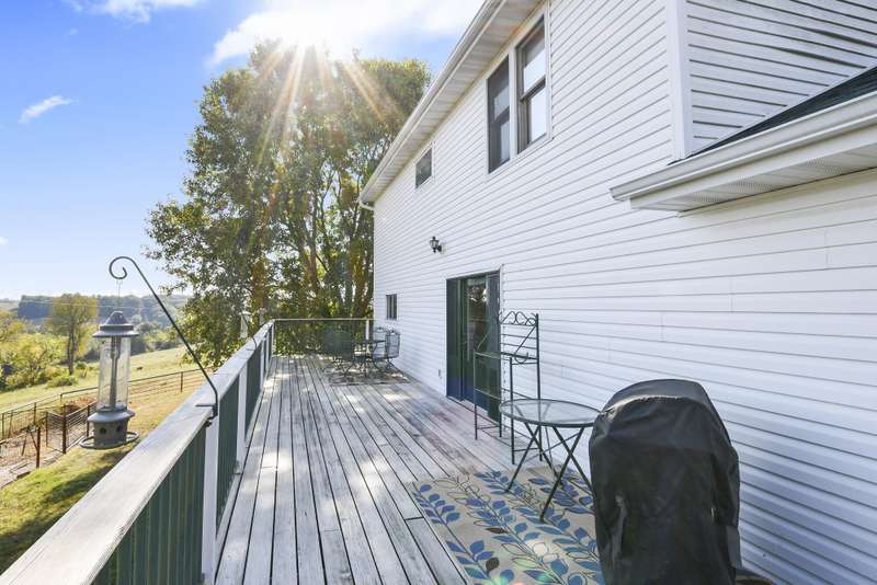 COUNTRY HOME AND ACREAGE Space, style, and country charm come together in this beautifully maintained 3-story, 4-bedroom, 2.5-bath home set on 2.86 acres--33.52 more acres are available to purchase. With over 4,000 sq. ft. of living space, a massive outbuilding, and updates throughout, this property delivers the best of both worlds--peaceful acreage living and a home that's truly move-in ready.From the moment you arrive, the charm shines through with a welcoming front porch and a freshly painted interior that feels crisp and inviting. Inside, the main level features newer tile flooring, a cozy wood-burning fireplace accented by a warm wood wall, and a layout that's both functional and stylish. The large kitchen is a showstopper with white cabinetry, a center island, stainless steel appliances (fridge included!), and a handy pantry. Hosting is easy with an open dining area that flows onto a spacious deck--ideal for grilling, gatherings, and sunset views.The floor plan includes two bedrooms on the main level, while the private upper level is dedicated to the primary suite and an additional bedroom. The primary suite offers a true retreat with a walk-in closet, dual sinks, jetted tub, and walk-in shower. Downstairs, the finished basement boasts durable wood laminate flooring, a half bath (with room to add a shower), and endless options for a game room, family hangout, or home gym.Practical updates add peace of mind--new roof and gutters (2024),new water heater (2022) and water softener (2023)--while the main-level laundry with storage cabinets keeps life organized. Car lovers and hobbyists will appreciate the 2-car garage with a workshop, and equestrian or farm enthusiasts will love the 40x90 outbuilding with concrete flooring, horse stalls, and 220 AMP electric. You'll also find a fenced acre for livestock, a garden area, and fruit-bearing apple, pear, and peach trees.All of this offers the perfect balance of peaceful country living and convenient access to the c