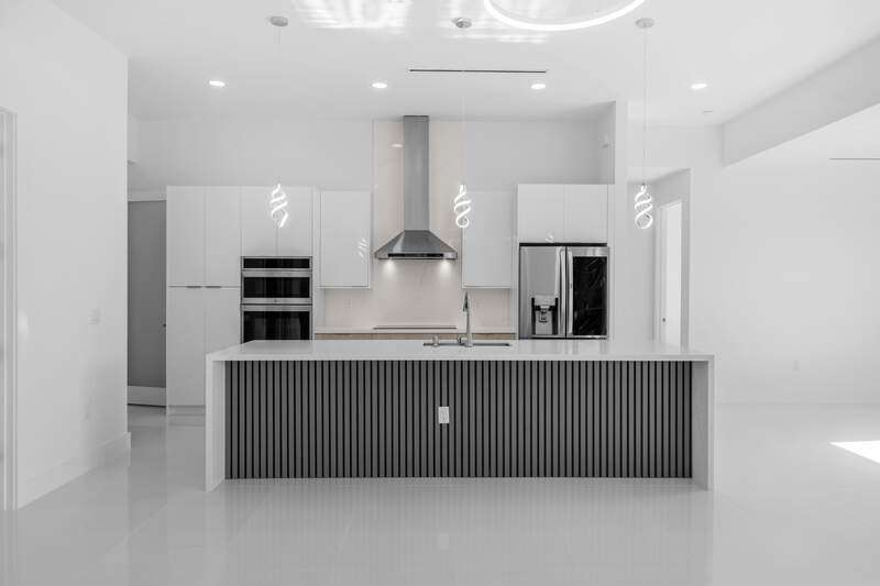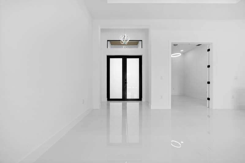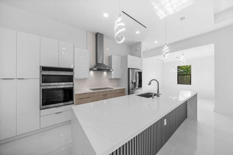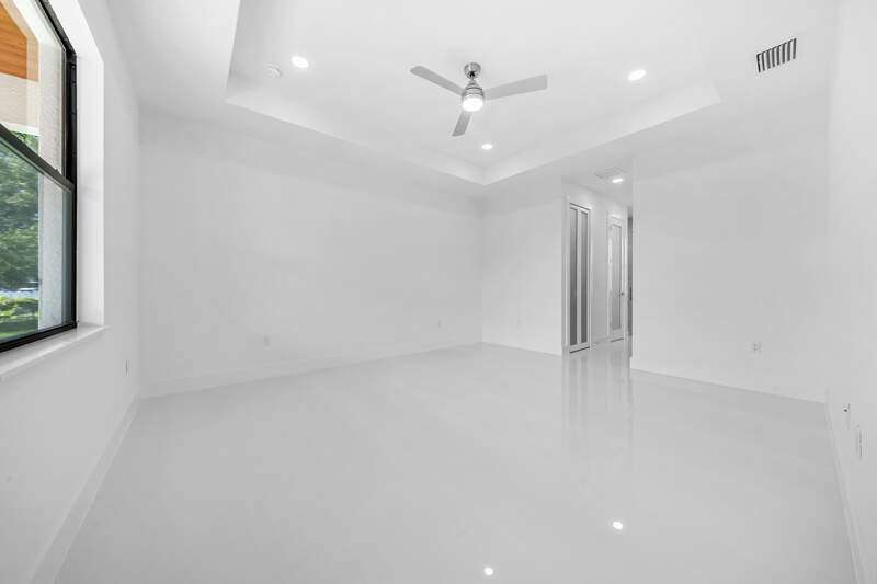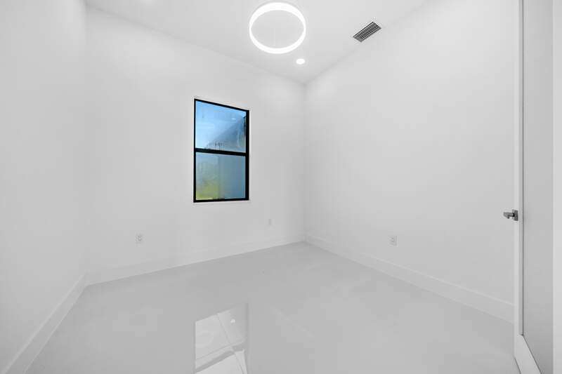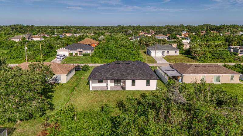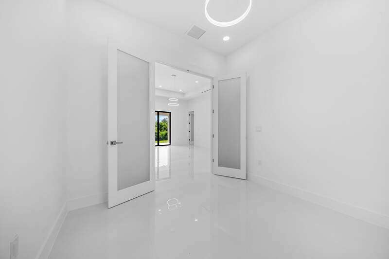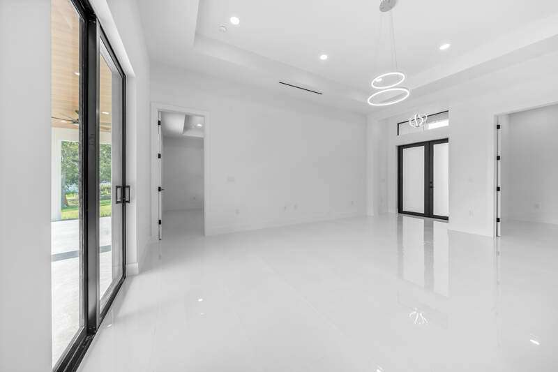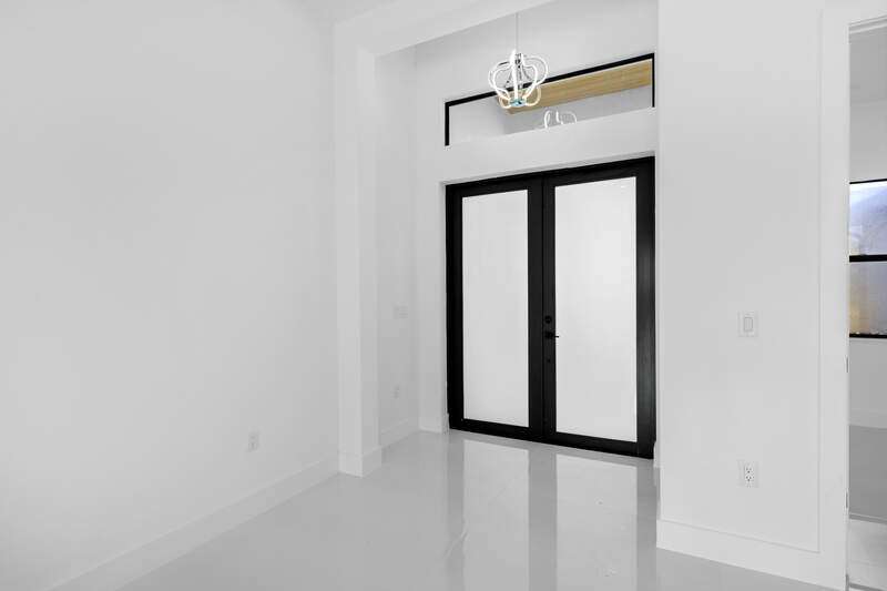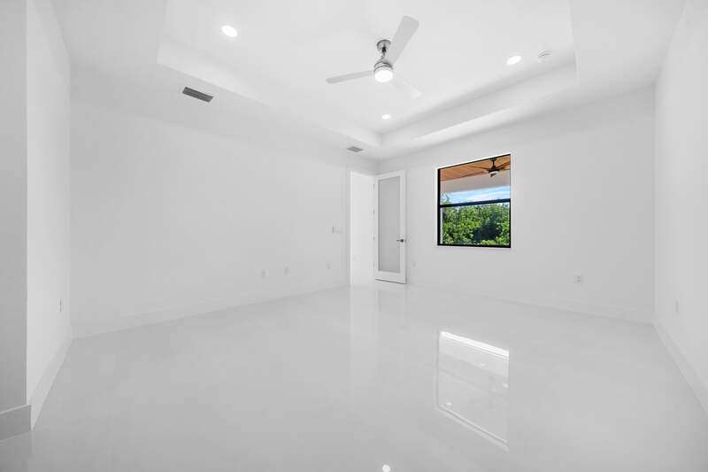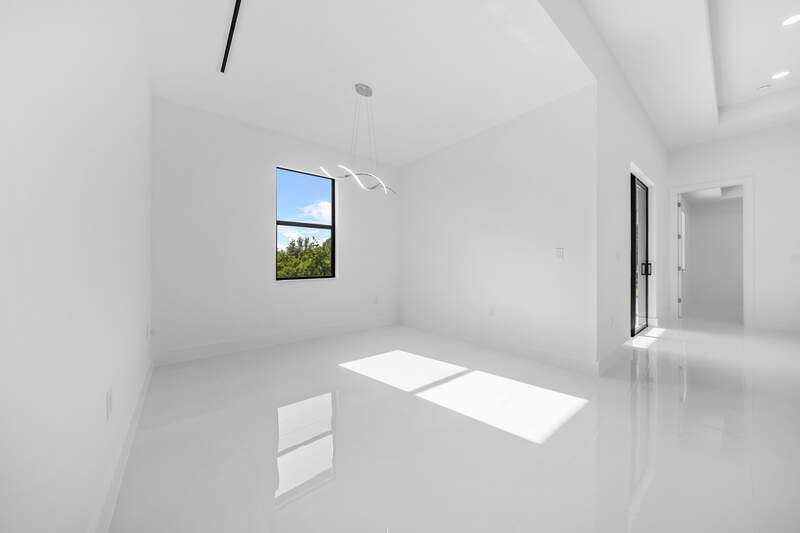 Amazing Brand New Home, High-end Finishes, on a 1/2 Acre Cleared Land, Move-in ready!! Chic sophistication, modern design, and a lifetime of memories to be made await you at this BRAND NEW construction home in sought after and growing Lehigh Acres with nearly 1,900 SqFt, 3+ Den, 2 bathrooms, and strong impact windows and doors throughout. Curb appeal is in full effect when pulling up to this stunning property situated on an acre with a paver driveway and pathway to the front door, fully landscaped, and gorgeous exterior lighting. From the French Door entryway, you are greeted by porcelain tile flooring throughout along with brand new custom LED light fixtures, frosted glass doors, impact resistant windows and exterior doors, and luxury finishes from top to bottom down to the baseboards. A true chef's kitchen; enjoy stainless steel appliances, stainless steel hood, quartz counters and backsplash, a cascading center island, soft close cabinetry and drawers, disposal, and a vantage point that is made perfect for entertaining any gathering. The dining area also comes equipped with modern and custom light fixtures. Your living area is prestigious with access to the lanai. You will not need a vacation when you have a lanai like this one with its outdoor kitchen including granite counter and stainless steel finishes, natural shiplap wood ceiling, fans, and recessed lighting. Build the pool you have always wanted to maximize this resort style home. The primary bedroom is a real treat to wind down the day with your modern glass shower, double vanity, water closet, and two walk-in closets with built-in closets. A home office, extra space for out of town guests, or whatever else you may envision can be used in the den off from the living area. The additional guest bedrooms enjoy tons of natural light, frosted double closets, and ceiling fans. Peace of mind is enhanced with your 2 car garage with epoxied flooring and separate entrance from the exterior, laundry room in residence with an additional large pantry, impact resistant doors and windows, and close proximity to shopping and dining. This area of Lehigh Acres is growing with tons of new commercial space attracting many businesses. Your forever Florida home is calling!