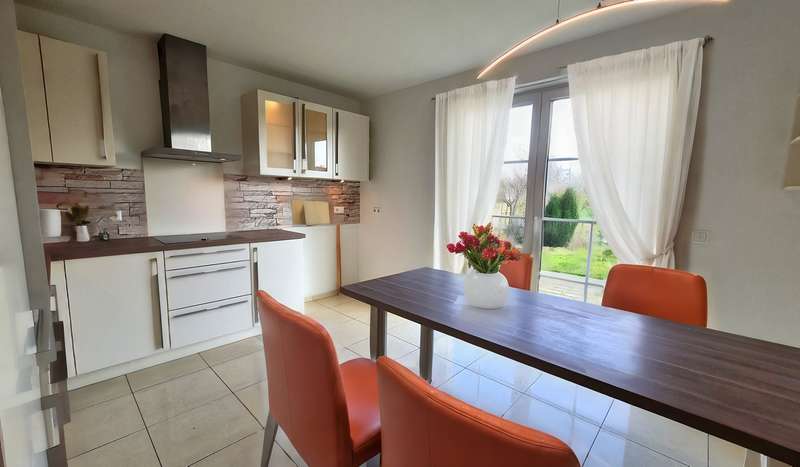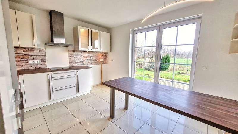 For sale is a charming detached house on the edge of a field with a living space of approx. 135 m² on a plot of approx. 1200 m². Built in 2011, the house is in a ready-to-move-in condition and was last modernized in 2018. It has 4 rooms, including 3 bedrooms, and a bathroom. In addition, two terraces offer enough space for cozy hours outdoors. The property is equipped with modern central heating and underfloor heating to ensure a pleasant level of warmth. A combination of air/heat pump and triple glazing enables energy-efficient heating. In addition to the living space, a carport offers space for your vehicles and a shed for storing garden tools or other utensils. Particularly noteworthy is the attractive location on the edge of a field with an unobstructed view. The property is fenced in, offering you privacy and security. The floor plan of the house is optimally designed and offers a generous feeling of space thanks to the open-plan living area. A gallery/gallery and the loft offer additional space and individual design options. The modern fitted kitchen, equipped with high-quality appliances, offers you a convenient cooking experience. With direct access from the kitchen to the terrace, you can also enjoy your meals outdoors. Overall, the house is in a well-kept condition and is ideal for families looking for the comfort of a family home with generous outdoor space. Be inspired by this property and arrange a viewing. See the many advantages of this property for yourself and take the opportunity to realize your future dream home.