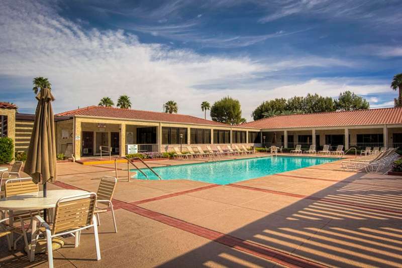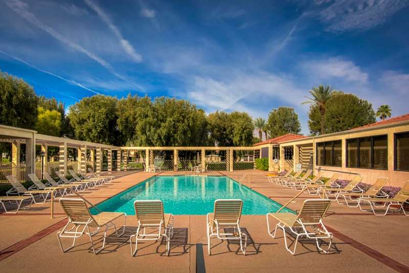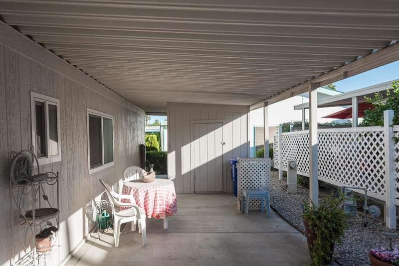 Welcome to the Premier 55+ Mobile Home Community in the Valley. This home is located on a quiet interior street with multiple guest parking nearby. There is a front patio area with great South & Western Mtn. views! As you enter the front door, this well maintain home features a large Living & Dining Room area, Dual Pane windows help with noise and are energy efficient. The Family Room and Kitchen are open to each other and lead to a large ''California'' room screened with brick flooring. The carport has a small sitting area and large storage shed for extra belongings. Also, the entry on the carport side leads to the laundry room with newer Washer and Dryer and has a Large Linen closet and the guest bathroom with shower over tub. The guest room could also be utilized as an office and has ample closet space. The Primary Suite is large and has a separate wall a/c. The Primary bath features updated step in shower and also large garden tub. There is an alternative Evaprative cooling system, both the A/C & Roof have been replaced within the past 10 years. The Canyon is centrally located in the Valley and has easy Freeway access on Gene Autry Trail or Date Palm Dr. We are near shopping, entertainment, PS Int'l Airport and 10-12 Min. to Downtown Palm Springs! The Canyon features only Full-Time Residence or Second Homes. We have wonderful park like greenbelt grounds with Tennis & Pickleball. Our clubhouse boasts an upgraded Banquet Hall, Gym, Card Room and Library along with 4 Enclosed Heated and Cooled Shuffleboard Lanes, Two pools and a Spa. You will need to qualify as a resident with 3 times space rent $950 = $2850 along with a FICO score of 750. One domestic animal of 20 lbs unless it is a Service Dog. The Canyon is the place to be for 55+ Adult Lifestyle Living.