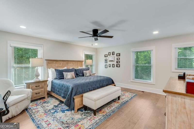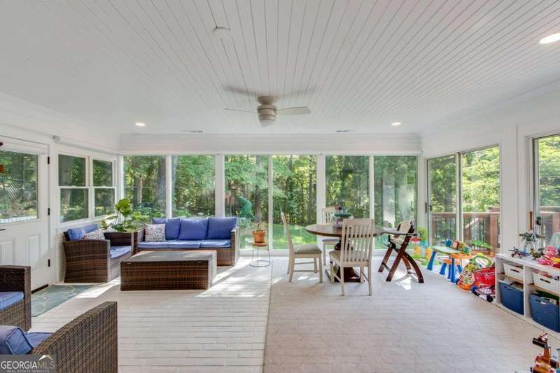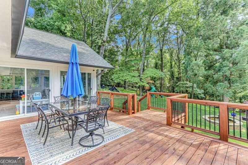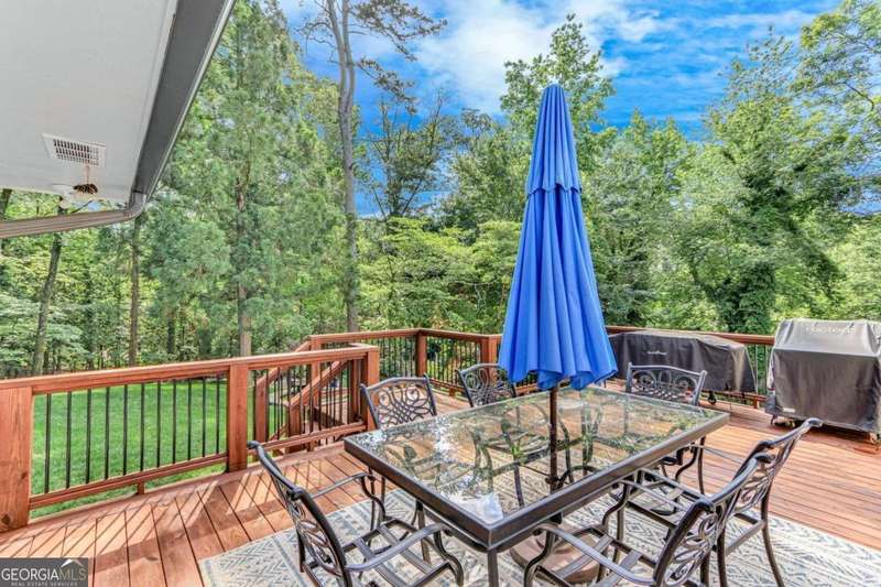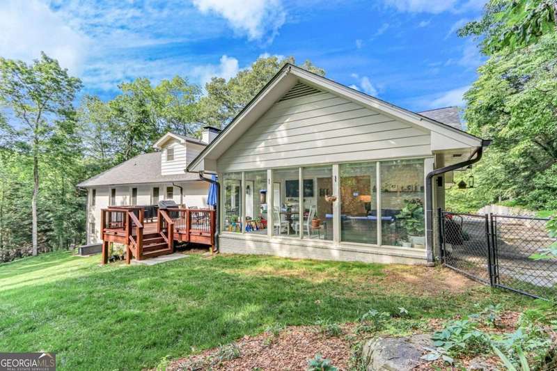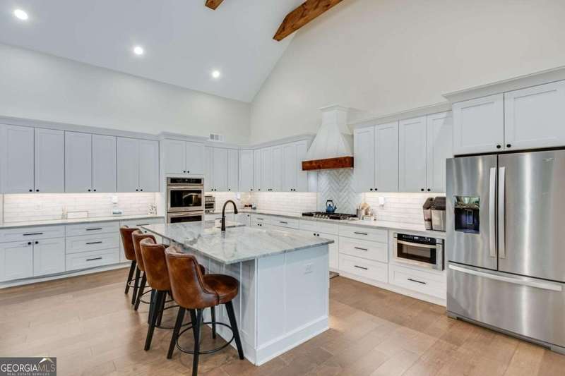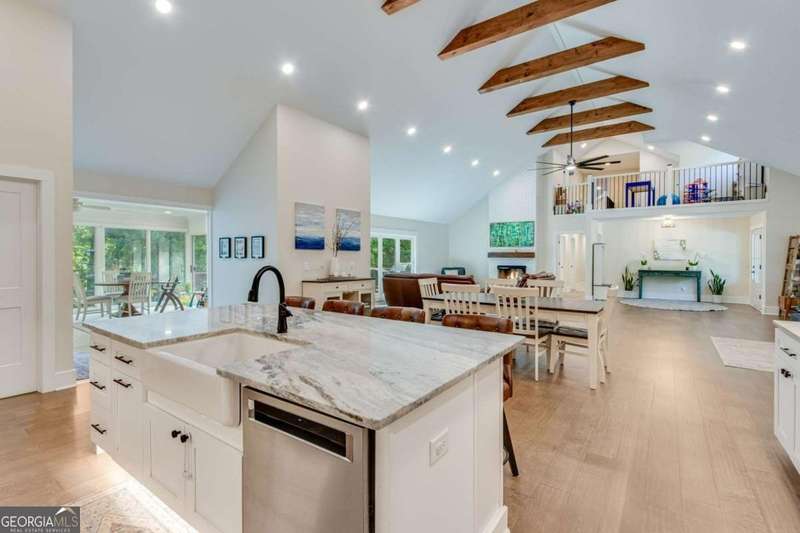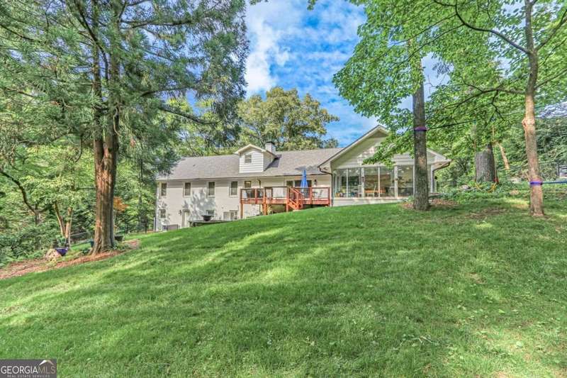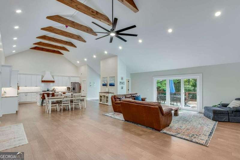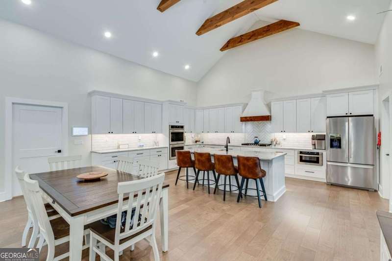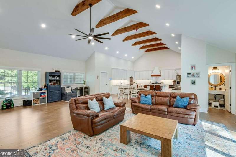 Timeless elegance meets modern comfort in this stunning 5 bedroom, 5 full and 2 half bathroom Gainesville home, perfectly situated on a private, park-like acre. From the soaring beamed ceilings in the great room to the chef's kitchen with custom pantry and coffee station, every detail has been thoughtfully designed. The main level features a serene owner's suite with spa-inspired bath, plus additional en-suite and guest rooms, while upstairs and terrace levels provide flexible living for family, guests, or work-from-home needs. A four-season sunroom invites natural light year-round, and the oversized laundry/mudroom is as stylish as it is functional. Outside, enjoy a spacious deck and private backyard ready for entertaining or your dream pool. With no HOA and a central Gainesville location close to schools, parks, and shopping, this home blends sophistication, space, and lifestyle in one incredible package.