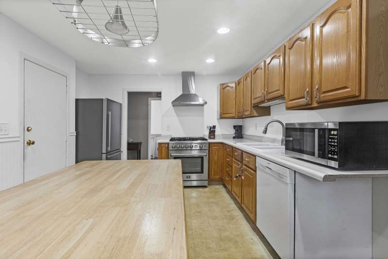 This home offers a wonderful opportunity for single-level ranch living on a quiet, tree-lined street. Offering three nicely-sized bedrooms with a full and a half bath with skylight just waiting for your personal touch. The spacious kitchen features a center island and stainless steel appliances, including a high-end FOMO oven/range. The kitchen opens to a formal living/dining space and a large light-filled family room addition. Adjacent to the family room is a large deck where you can relax and enjoy beautiful sunsets. Additional highlights include a one-car attached garage with an extended drive for ample parking. Roof, gutters, fascia, Tyvek house wrap, and siding in 2018. Updated sewer line and clean out in 2020.
