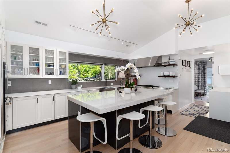 Mansfield Heights finest new listing: 3925 S. Cherry Street was totally re-imagined by the current owners. This stunning, move-in ready, ranch style home is located in the Mansfield Heights area of Cherry Hills Village. This property features modern upgrades throughout while maintaining timeless charm. The attention to detail during the renovation makes this home truly one of a kind. Whether you are entertaining guests or enjoying a quiet evening, this home offers the perfect balance of comfort and sophistication. The gourmet kitchen is a chef's dream, featuring a Sub-Zero refrigerator, Dacor range, Bosch dishwasher, White Macaubus Quartzite and Caesarstone Quartz counters. The designer, antique light fixtures throughout the home bring an elegance that you will not see in other homes. The custom, built-in Family room bar was designed specifically for this home. The open floorplan with vaulted ceilings, flows to the enormous, covered patio through 12' custom multi-slide, zero threshold pocket doors. The patio has a built in, covered grill and overhead heaters. The extraordinary main floor Primary Suite opens directly to the spa like Primary Bathroom with an oversized steam shower, a freestanding soaking tub with views of the garden, dual vanities, radiant heated floors and limestone throughout. There are two expansive walk-in closets with custom built-ins. There is an additional three bedrooms, two of them with ensuite bathrooms. The spacious lower level has a den or playroom and ample storage for all of your gear. The manicured backyard is completely fenced in with a modern, steel fence. There is a separate studio in the back of the house with a 3/4 bath. It is the perfect space for an office, den or an additional bedroom. Three garage spaces, two attached to the main house and one attached to the studio. https://www.3925scherryst.comAll televisions, brackets and sound bar that are currently installed are included.