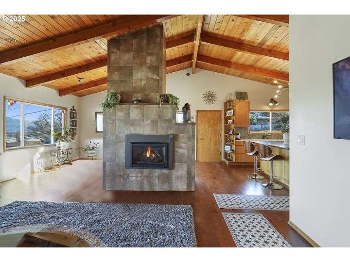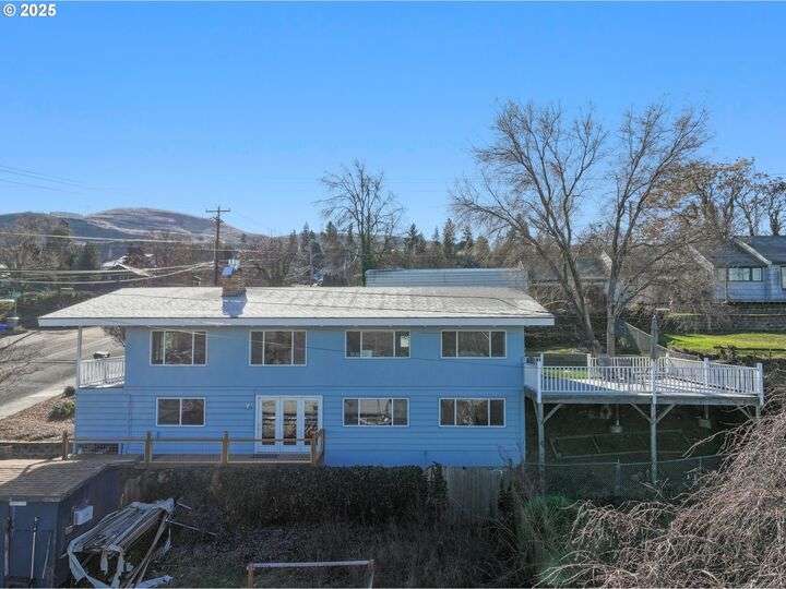 Welcome to 1509 Quinton St in The Dalles—a beautifully updated mid-century gem featuring breathtaking views of the Columbia River and lovely territorial views of the Washington hills. This spacious 4-bedroom, 3-bathroom home offers a perfect blend of vintage charm and modern upgrades, creating an ideal space for comfortable living and entertaining.Step inside to discover original tongue-in-groove fir ceilings, dual gas fireplaces and an inviting layout designed to maximize natural light. The gourmet kitchen is a chef’s dream, featuring custom bamboo cabinetry, quartz countertops, stainless steel appliances including a 6 burner natural gas stove and a double oven, all centered around a generous island—perfect for gatherings.Enjoy seamless indoor-outdoor living with an expansive deck overlooking Bob Williams Ball Park and panoramic river and territorial views. The versatile lock-off unit provides endless possibilities, equip with its one washer/dryer hook ups and exterior deck access.This home has been thoughtfully updated with new plumbing, electrical, HVAC (including heat pump & central air), flooring, kitchen, bathrooms and a newer roof, ensuring worry-free living. The luxurious tiled bathrooms and unique solar-powered nightlight add a touch of sophistication.Don’t miss this opportunity to own a stunning, move-in-ready home in a prime location! Schedule your showing today!