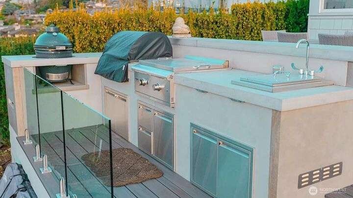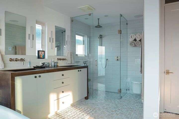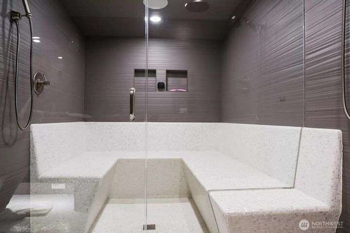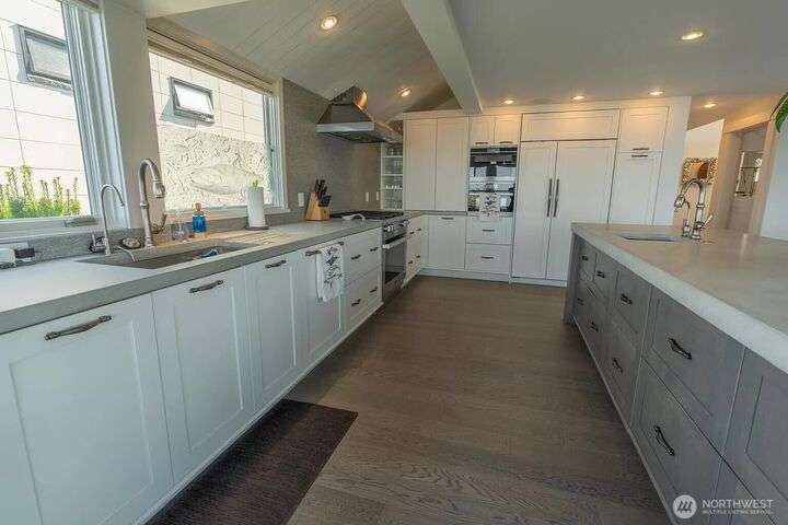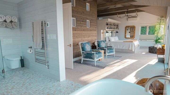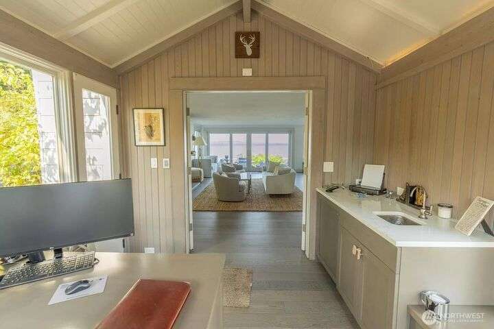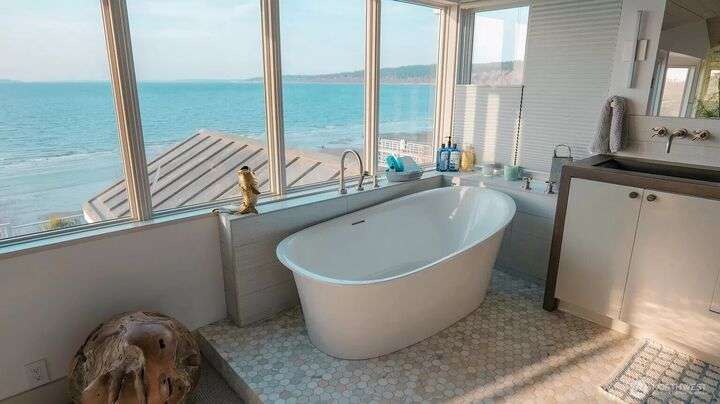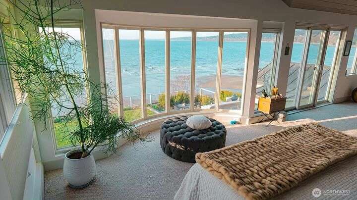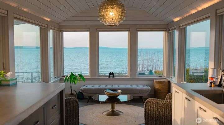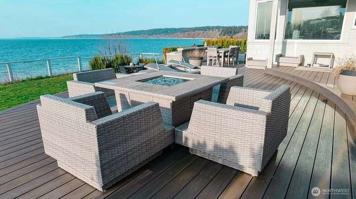 Stunning high bank waterfront tastefully furnished w/unobstructed views of Puget Sound! Extensively remodeled in 2017 w/luxurious amenities you'll need to feel at home. Stunning kitchen w/Subzero fridge, Miele appliances that includes 6 burner stove, convention oven, built in coffee maker & 2 dishwashers & charming view nook. Lower level includes media room w/Murphy bed-great guest quarters, a gym & dreamy steam room. 3 en-suite bedrooms, 2 w/washer & dryer & a magnificent view primary suite. Outdoor living at its finest, w/huge deck, porch swing, hot tub, fire table, BBQ, griddle, green egg & sink. Excellent neighborhood w/private beach access. Feel like you’re on vacation, yet close to all Seattle has to offer.