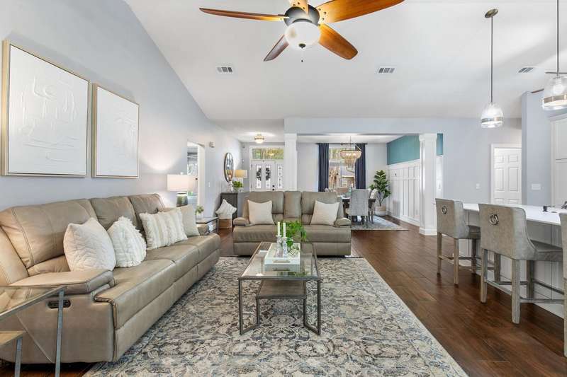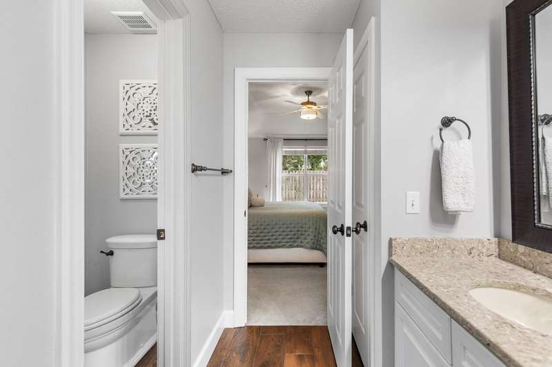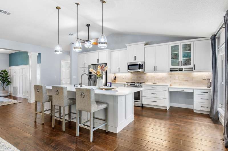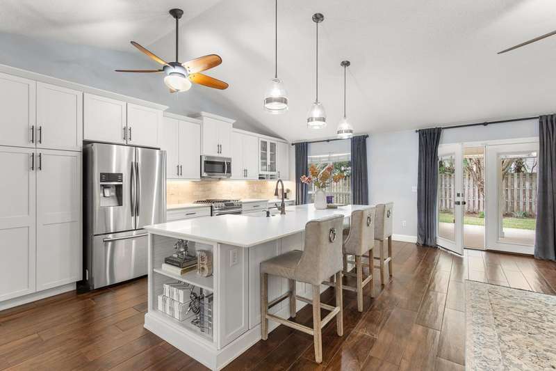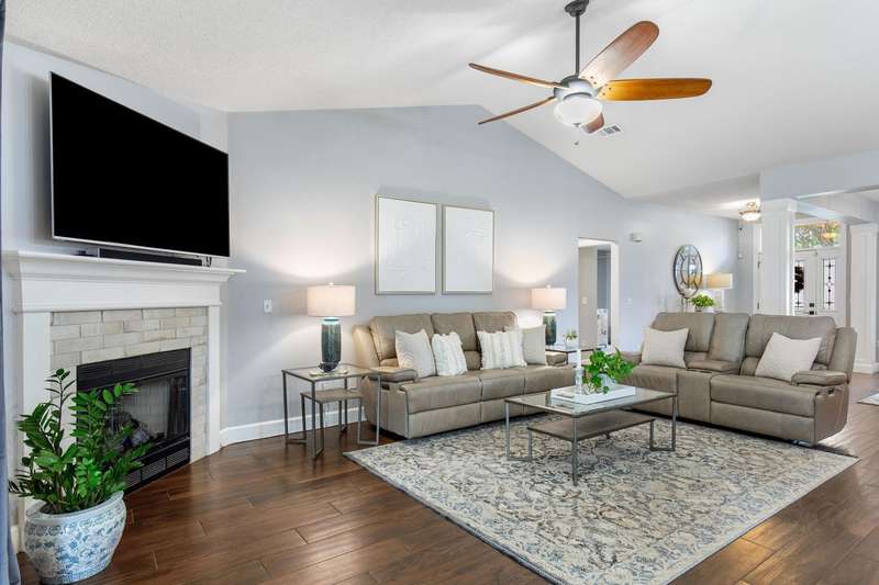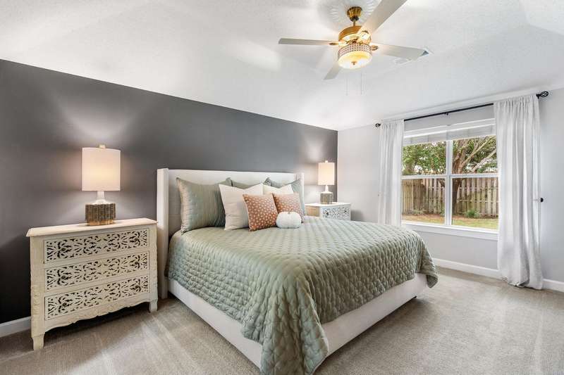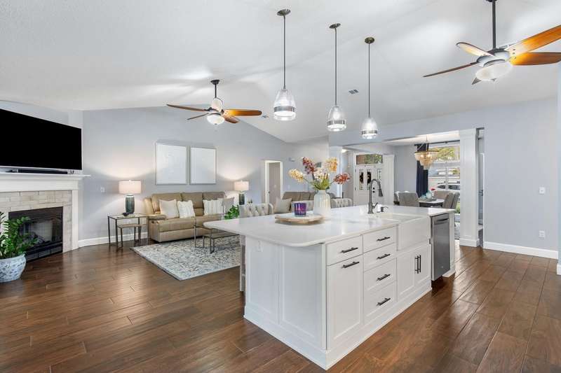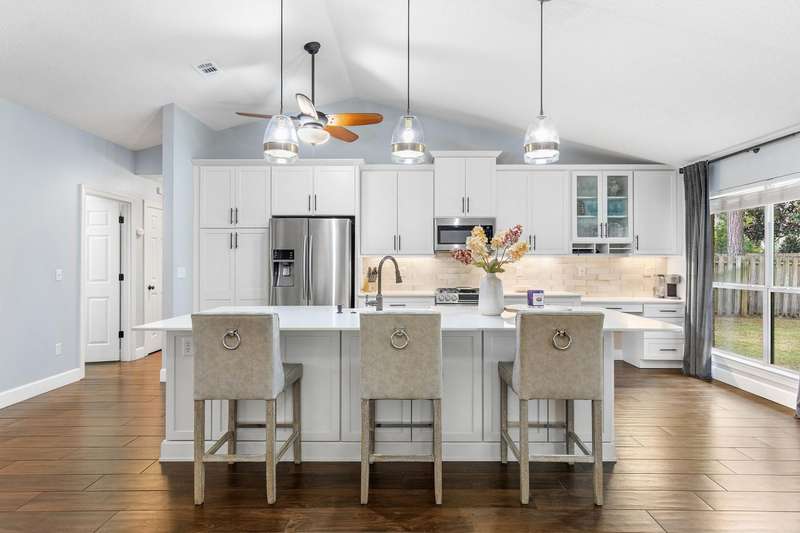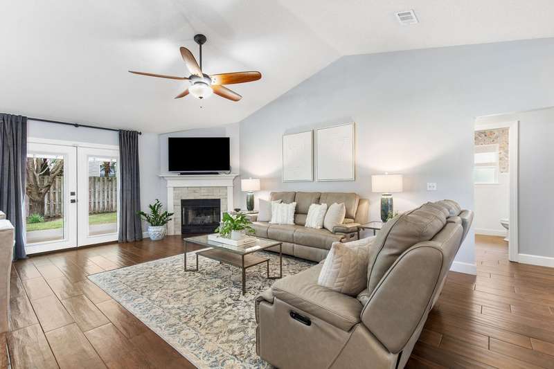 BRAND NEW ROOF installed October 2025! Discover your piece of paradise in the heart of Destin. Set in the desirable Indian Lakes community, this 3-bed/2-bath home pairs a split-bedroom layout with an airy, vaulted great room for easy everyday living and entertaining. The redesigned kitchen features white shaker cabinetry, quartz counters, an oversized island, and a full stainless suite, including a 5-burner gas range with dual convection and a French-door refrigerator with dual ice makers. A remote-controlled gas fireplace anchors the living space. Durable wood-look tile runs throughout the main areas, and both baths showcase light cabinetry with quartz tops. Practical upgrades include a tankless water heater (2017) and an updated A/C (2024).