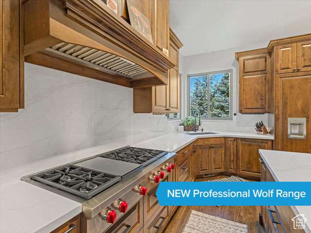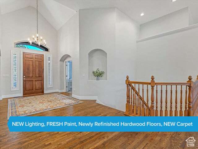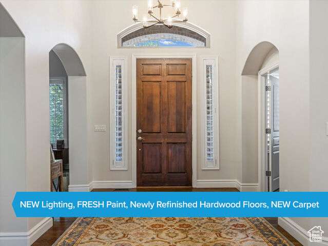 All new kitchen and new baths in this luxurious residence situated on an expansive 0.58-acre estate lot next to the Hidden Valley Country Club golf course with ample space for a future pool and pickleball court. This completely renovated home has had $640,000 in premium improvements since 2022 (see the attached upgrade summary). As you approach this exceptional home, the stunning exterior immediately captures your attention. From the welcoming entryway you can step into the inviting living room or elegant formal dining room-both perfectly designed for entertaining. The great room, a true centerpiece of this home, invites you to unwind and gather by the cozy gas fireplace. The all-new kitchen is nothing short of spectacular. It features custom cabinetry, gleaming quartz countertops, a pantry, and top-of-the-line appliances, including a 48-inch Wolf 6-burner range with a griddle plate, and a Thermador column-style built-in refrigerator and freezer-this kitchen is a culinary dream. The butler's pantry and beverage fridge ensure seamless entertaining, while the high-performance wood-clad range hood adds a sophisticated touch. The luxurious primary suite is a sanctuary of comfort with tall, sunny windows, vaulted ceilings, and a walk-in closet with a built-in organizer system. The all-new, spa-like primary bath is a retreat in itself, featuring a new soaking tub with traditional and exfoliating jets, a double vanity, and a separate shower with a beautifully tiled surround. The remaining three bathrooms have also been updated with new surrounds, tile flooring, vanities, countertops, and fixtures. This home is truly move-in ready with fresh paint, refinished hardwood floors, and new carpet. The finished basement, with 10-foot ceilings, offers a vast recreational room, a cozy play nook, four spacious bedrooms, and two full bathrooms-perfect for growing families or hosting guests. Additionally, you'll find a second laundry connection, a cold storage room, and two more storage rooms in the basement. Step outside to discover the professionally landscaped grounds, offering mature trees, a lush lawn, a new composite deck, a new patio, rock accents, and manicured plants. Other features include a new roof, new Renewal by Andersen windows, and new garage doors. Living in Draper, you are surrounded by world-class trail systems, breathtaking parks, and top-rated schools. The Valle di Villa subdivision also boasts a sparkling swimming pool, clubhouse, and walking path to enjoy.