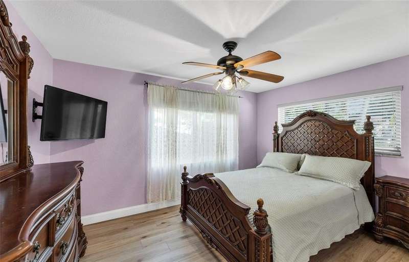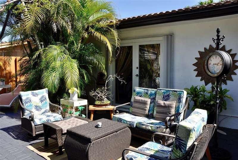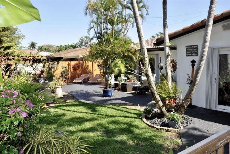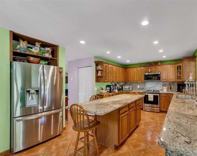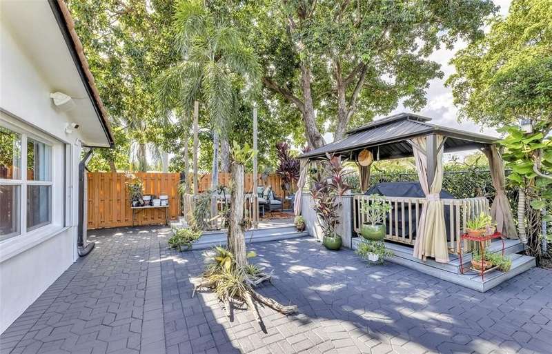 Welcome to this spacious 4-bedroom, 2-bathroom single-family home with no HOA, situated on a beautifully manicured corner lot. A massive paved circular driveway and lush tropical landscaping create a stunning first impression, while the fully fenced yard offers privacy and security. Extensive paved areas on both sides of the property along with outdoor lighting, a covered gazebo with an outdoor kitchen, and a large storage shed. Inside, the home features a modern, recently renovated bathroom and a well-appointed kitchen complete with granite countertops and stainless steel appliances. The kitchen opens into the Florida room, providing natural light and peaceful views of the gorgeous garden. Partial impact windows and doors, with accordion shutters on the remaining openings.