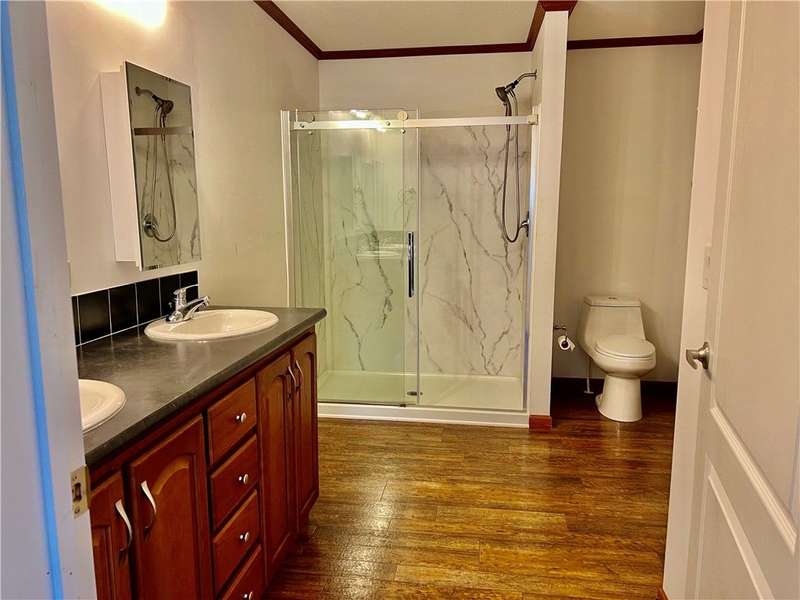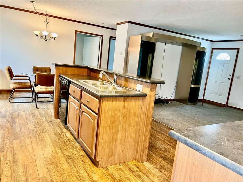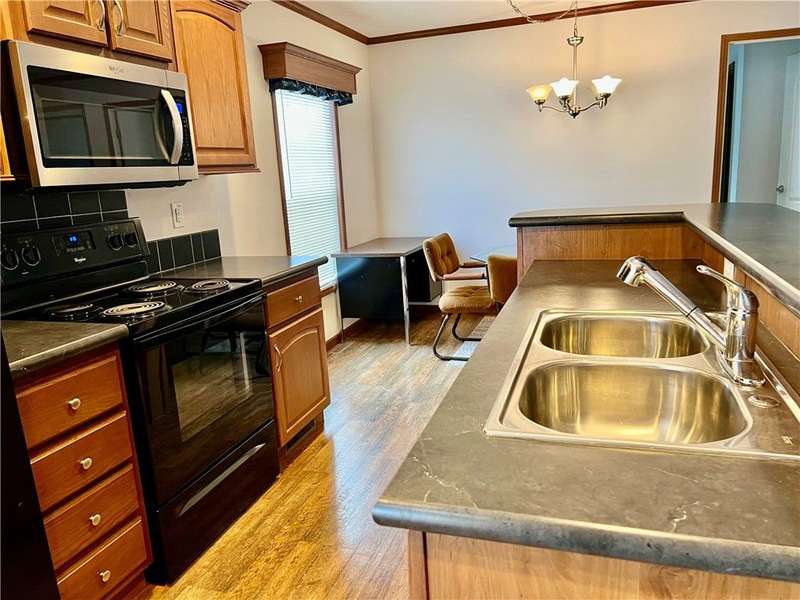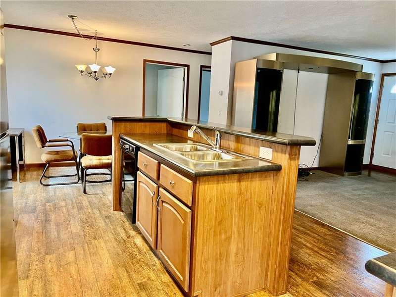 2016 Double Wide on a corner lot and a detached garage with a high overhead door.....Open kitchen to the living room...separate master bedroom with master bath...two additional bedrooms and a laundry room....Plenty of off street parking.....Nice deck and walking distance to town....