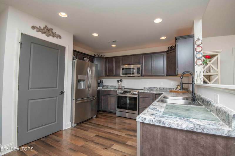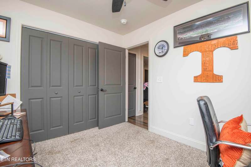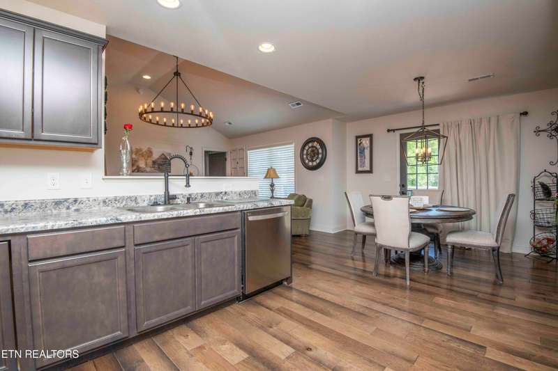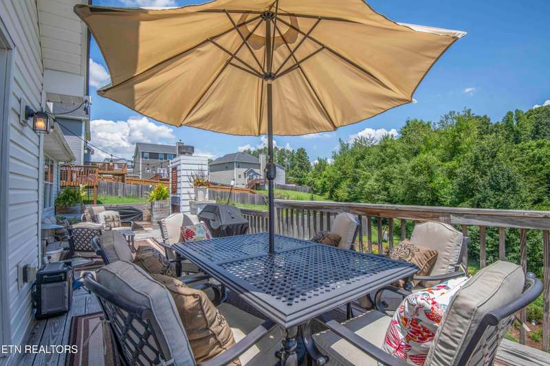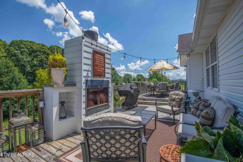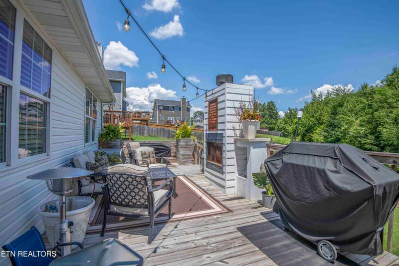 Move-In Ready Ranch with Designer Finishes Throughout! This stunning, better-than-new ranch home is filled with high-end upgrades and thoughtful touches. Freshly painted and featuring a desirable split-bedroom layout, the open-concept floor plan seamlessly connects the kitchen, dining, and living areas—perfect for entertaining. The living room showcases a beautiful shiplap fireplace and upgraded light fixtures, while the dining area includes stylish floating shelves. The kitchen boasts upgraded appliances and modern finishes. Elegant board and batten wall treatments add charm to the hallway and guest bedroom. The spacious primary suite features a custom wainscoting accent wall, sliding barn doors, a walk-in closet, and an en-suite bath with dual vanities. A versatile bonus room provides additional space for a playroom, home theater, office, or guest suite. Step outside to your backyard retreat, complete with a large deck, outdoor fireplace with firewood boxes, cozy café lights, and a separate fire pit area—perfect for relaxing or entertaining. Neighborhood amenities include a pool, playground, basketball court, picnic area with BBQ grills, walking trails, sidewalks, and weekly food truck visits. Conveniently located near shopping, restaurants, and zoned for Brickey Elementary, Powell Middle, and Powell High School. Prepare to fall in love with this beautifully designed, inviting home!
