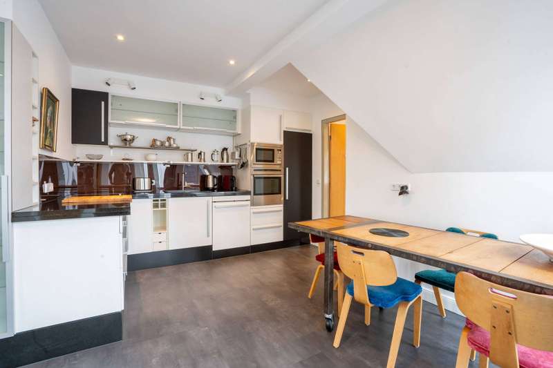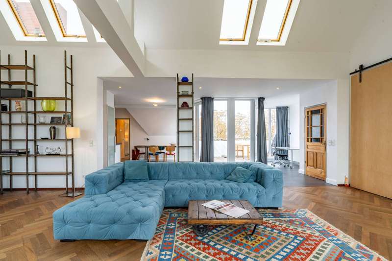 Ihr neues Zuhause in Schöneberg – Exklusives Wohnen über den Dächern Berlins Willkommen in Ihrem neuen Zuhause! Diese elegante Dachgeschosswohnung im Herzen von Schöneberg bietet auf ca. 145 m² eine perfekte Kombination aus Stil, Komfort und Funktionalität. Genießen Sie den Charme dieser besonderen Immobilie, die Ihnen alle Annehmlichkeiten bietet, um sich sofort wohlzufühlen. Das Herzstück der Wohnung ist der großzügige Wohnbereich mit Kamin. Wenn der Sommer kommt, lädt die Südwest-Terrasse dazu ein, sonnige Tage und laue Abende in vollen Zügen zu erleben. Die lichtdurchfluteten Räume mit großen Fenstern schaffen eine freundliche und einladende Atmosphäre. Ihr Hauptschlafzimmer, das ruhig zum Innenhof gelegen ist, garantiert Ihnen erholsame Nächte. Ein hochwertiges Badezimmer mit Walk-in-Dusche und Eckbadewanne bietet Ihnen die perfekte Möglichkeit, sich nach einem langen Tag zu entspannen. Zusätzlich verfügt die Wohnung über ein durch eine Schiebetür abtrennbares Arbeitszimmer, das sich ideal für das Homeoffice oder als Gästezimmer eignet. Besonders hervorzuheben ist der außergewöhnliche Grundriss dieser Immobilie: Eine eingezogene Hochebene schafft Platz für eine begehbare Garderobe im unteren Bereich, während der obere Raum wahlweise als Abstellfläche oder weiteres Schlafzimmer genutzt werden kann. Modernisiert im Jahr 2023, besticht diese exklusive Dachgeschosswohnung durch ihre hochwertige Ausstattung: Fußbodenheizung, edle Parkettböden und eine durchdachte Raumaufteilung machen dieses Zuhause zu einem einzigartigen Wohlfühlort. Die zentrale Lage im Bayerischen Viertel, unweit des Viktoria-Luise-Platz bringt Sie nur wenige Schritte von angesagten Cafés, Restaurants und Einkaufsmöglichkeiten entfernt – alles, was Sie für ein komfortables Leben benötigen. Überzeugen Sie sich selbst – Ihr neues Zuhause erwartet Sie!