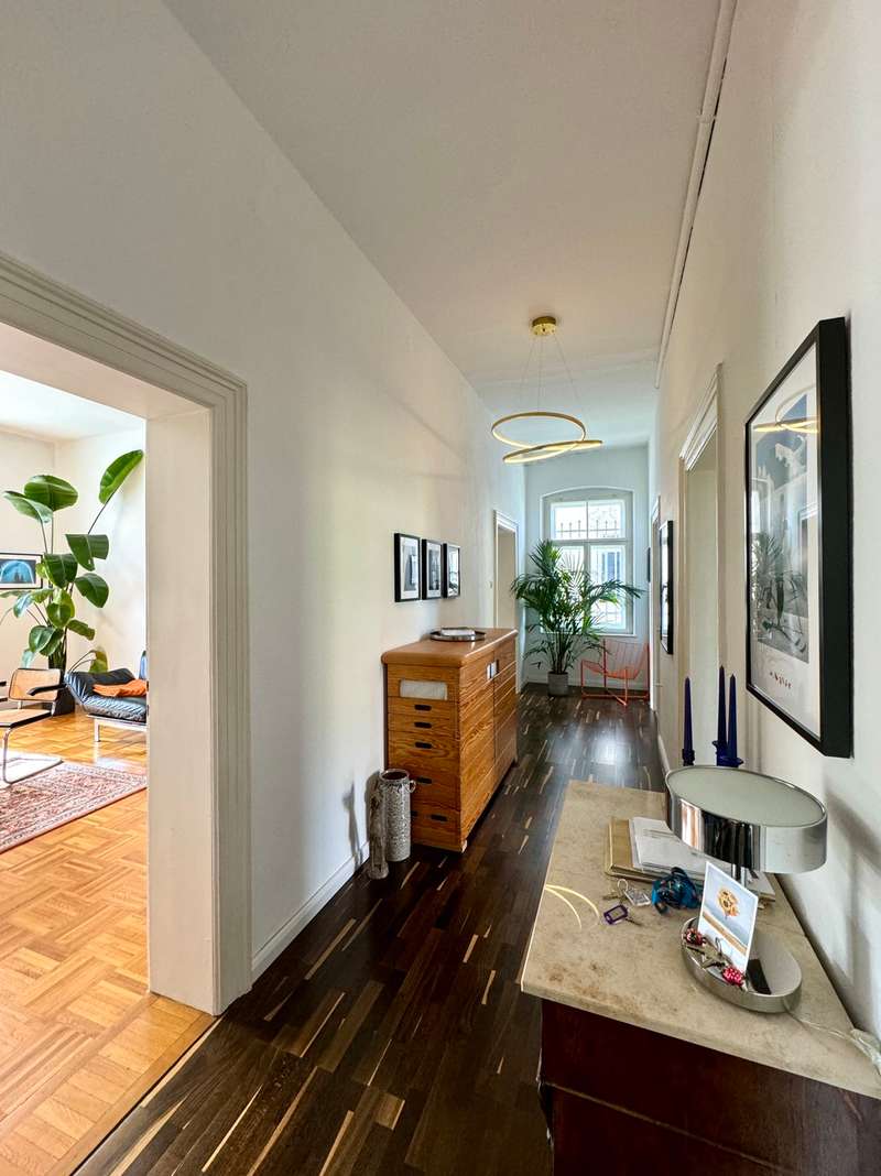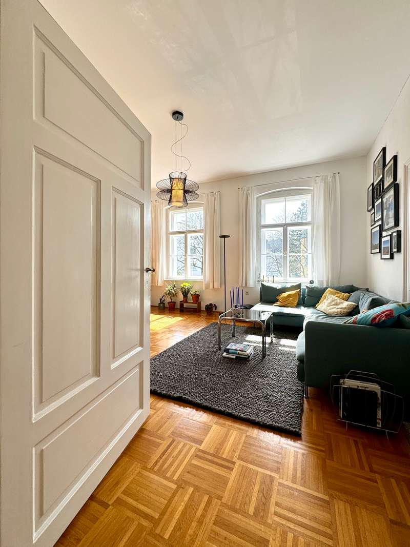 Welcome to a residential gem that combines exclusivity, luxury and a prime location to make your living dreams come true! This magnificent apartment is located in one of Regensburg's most sought-after residential areas in the Inner West, known for its privileged living and proximity to the Old Town. Situated on Dechbettener Straße, lined with majestic 19th century townhouses, this magnificent property is located. The adjoining Dörnberg and well-known town park in the immediate vicinity is ideal for relaxing walks and leisure activities, making this location a true paradise for sophisticated living. The townhouse itself exudes timeless elegance, with spacious rooms, high-quality materials and a well thought-out design concept. Only three exclusive residential units are housed in this magnificent building, which immediately impresses with its rustic front door and historic and elegant staircase. Enter the second floor through an imposing apartment door with skylight windows and be enchanted by an ambience that combines the charm of bygone times with extraordinary living comfort. The apartment itself extends over the entire floor with a generous 140 square meters and, with 5.5 rooms (current layout: apartment with 4 rooms and an apartment), offers living space of outstanding quality. As soon as you enter, you are greeted by high ceilings and original, ornately decorated period doors, which underline the unique character of this property. The floors are covered with high-quality parquet, which gives every room a warm and inviting atmosphere. The living room of this exquisite apartment is a place of unparalleled elegance and comfort, inviting you to relax and unwind. With generous dimensions and a harmonious design, this living room offers an appealing atmosphere for daily life and social gatherings. Large, original box-type windows from the Art Nouveau period with double glazing let in the daylight and offer a picturesque view of the surroundings. These windows, with their forged handles and ornate details, add a touch of sophistication to the room and create a link to the history and tradition of the townhouse. From the living room, there is the option of a passageway to another living area, which offers a variety of uses. Here you have the option of setting up a small home office area to work or retreat in a quiet atmosphere. This room is ideal as a large children's room or guest area and offers plenty of space for individual design ideas. A special feature of this living area is that it can be accessed independently from the staircase via a second front door. This opens up a wide range of possible uses, whether as part of the entire apartment or, as is currently the case, as a separate apartment. This makes the apartment particularly attractive for families with older children, as a guest area or even for external letting, which can generate additional income. Here too, the original box-type windows with double glazing provide a bright, inviting ambience and offer a picturesque view of the garden. Another highlight of this apartment is the large bathroom with timeless tiled décor and generous fittings including a bathtub and a shower option. The kitchen impresses with a well-maintained fitted kitchen with all technical appliances and a cozy dining area, while the separate and very large dining room is perfect for family get-togethers. The master bedroom with a view of the garden and a charming children's room complete the picture of an ideal family home. An additional highlight of this dream apartment is its own romantic garden area with hidden seating, ideal for relaxing hours outdoors or creating your own green oasis. The garden impresses with its charming design and hidden seating areas, which are perfect for relaxing hours outdoors. Under shady trees or between fragrant flowerbeds, you can sit back, enjoy the silence and listen to the birds singing. The garden offers space for creativity and development, be it by creating your own beds and planting or by designing cozy seating areas. Here you can live out your green fingers and let your imagination run wild to create a place of relaxation and recreation that meets your personal expectations. The townhouse is presented in first-class condition with a recently renewed exterior façade in a very appealing color and modern amenities such as a new roof construction and efficient gas condensing heating. The very well maintained front garden with its valuable planting is very inviting and appealing. This apartment is undoubtedly a real estate rarity that meets the highest standards and promises a life of luxury and comfort. An energy certificate has already been commissioned and is still being drawn up. The relevant details are therefore not yet available.