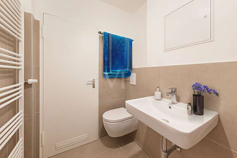 A modern and extensively renovated apartment is for sale in the popular location of Marienfelde. Located on the mezzanine floor, this apartment was extensively modernized in 2025 and offers an appealing living ambience on approx. 41 m² of living space, with south-east orientation and a view of the well-kept garden. Built in 1970, the property is now in a modernized condition that ensures a high level of living comfort. The room layout includes a spacious living room and bedroom with preparations for a kitchenette, which offers flexible furnishing options. The high-quality laminate flooring in a herringbone look conveys the charm of parquet flooring and creates a warm atmosphere. The bathroom has been completely renovated for added comfort. It is fitted with new tiles, ceramic items and a modern, large walk-in shower. A towel radiator and a rain shower round off the fittings and underline the upmarket quality of the entire property. Particular emphasis was also placed on modernizing the electrical installation. The apartment has a new electrical distribution board and the walls and ceilings have been filled and sanded to ensure a flawless appearance. The new, double-glazed wooden windows not only contribute to energy efficiency, but also let in plenty of natural light thanks to the widened pane spacing. On sunny days, the east-south facing balcony offers a pleasant outdoor space, ideal for breakfast or a relaxing afternoon. Other practical aspects of the apartment include a storage area in the hallway and a cellar compartment that offers additional storage space. Mobility is taken care of: there is the option to purchase your own parking space for a one-off €19,500. Thanks to the quiet orientation of the apartment, residents here enjoy a pleasant seclusion from the hustle and bustle of the city. The central heating system provides cozy warmth all year round. This property is ideal for singles or couples looking for a modern home in a good location. The current modernization measures guarantee low maintenance costs in the coming years. A viewing is well worthwhile to experience the benefits of this property for yourself. Make an appointment directly to get an impression of this modern, high-quality furnished apartment on site. This opportunity is particularly suitable for those who attach great importance to quality and well thought-out, modern furnishings.