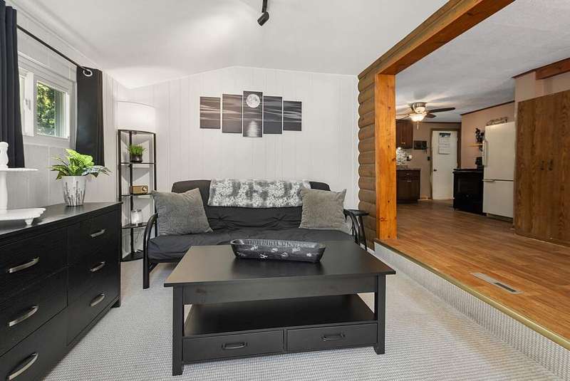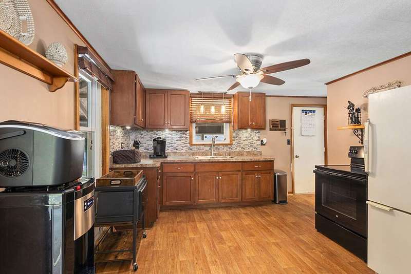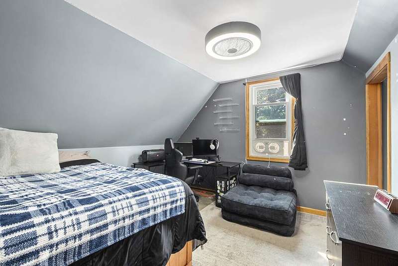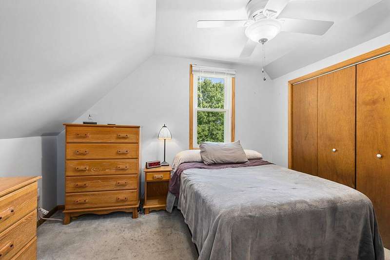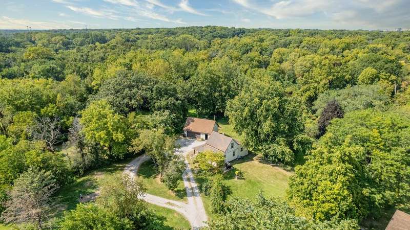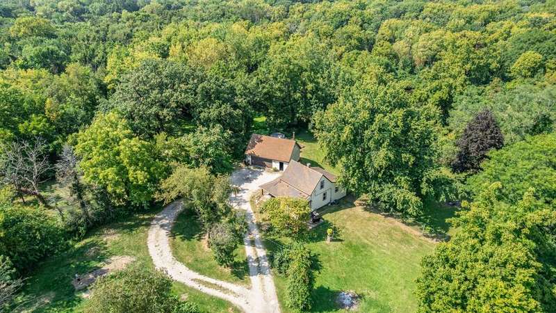 Sellers are motivated, bring all offers. Discover this rarely available charming home nestled on a serene 2.5-acre lot with mature woods and a peaceful creek at the back of the property. Offering a blend of recent updates and cottage appeal, this home is ready to move right in and enjoy. Notable updates include all new windows installed in 2021 through 2023, new vinyl siding in 2021, and a new hot water heater in 2021. The furnace and A/C were updated in 2013, and a new 100-amp electric panel has also been installed, providing peace of mind for years to come. Step inside to find a remodeled kitchen in 2016 featuring soft-close cabinetry, freshly painted walls (2024), and a brand-new electric stove (2025) with gas hook-up still available. The spacious family room was remodeled in 2024 and boasts a new sliding glass door leading to the concrete patio and fully fenced yard. The main level also includes a comfortable bedroom space, full hall bathroom, a convenient office space, laundry room, and a generous walk-in closet. Upstairs, you'll find two nice-sized bedrooms and another walk-in closet, providing plenty of space for family or guests. The exterior is equally impressive with a heated 2.5-car detached garage, complete with a wood-burning stove, ceiling fan, and a second-floor storage area that could be finished into additional living space. Outdoor living is enhanced by the covered front porch with exterior lighting, a fully fenced yard with a concrete patio, and a shed for additional storage. A private path at the back of the lot leads to the creek, making it easy to enjoy the natural surroundings. Enjoy the privacy and a tranquil setting with picturesque views. This property offers the perfect balance of indoor comfort and outdoor space, ideal for those seeking privacy, room to grow, and a beautiful natural setting. Don't miss out on this amazing opportunity! Near shopping, dining, VFW, and expressway!