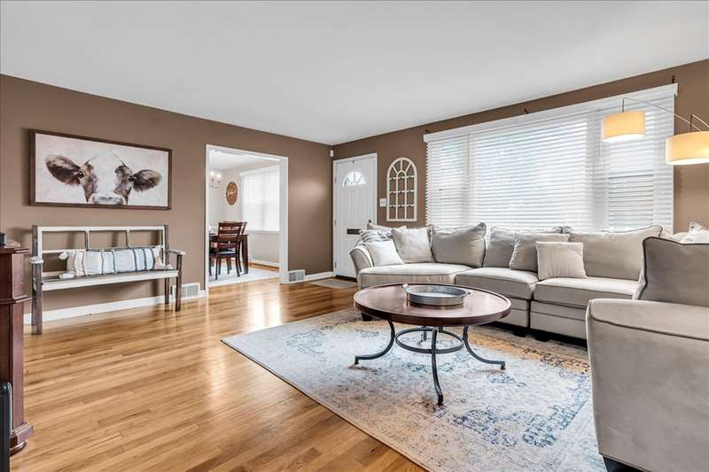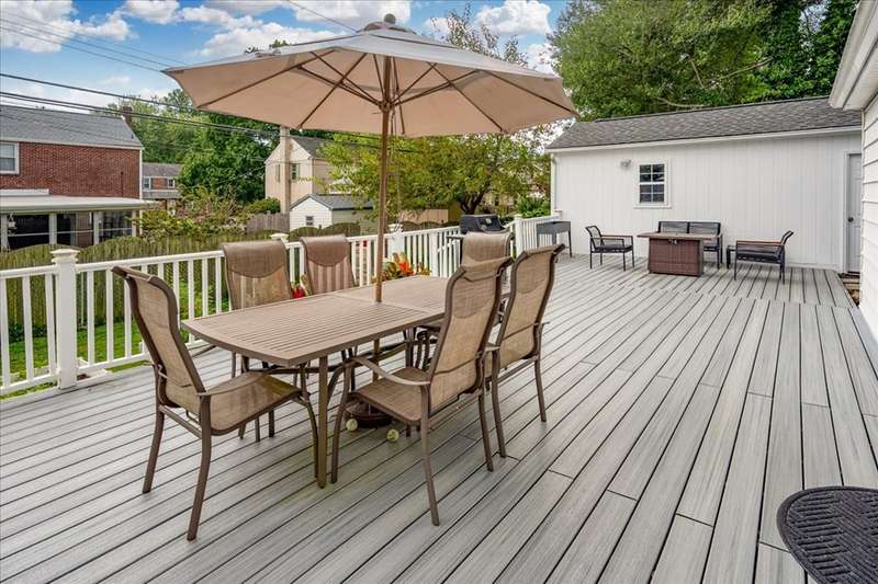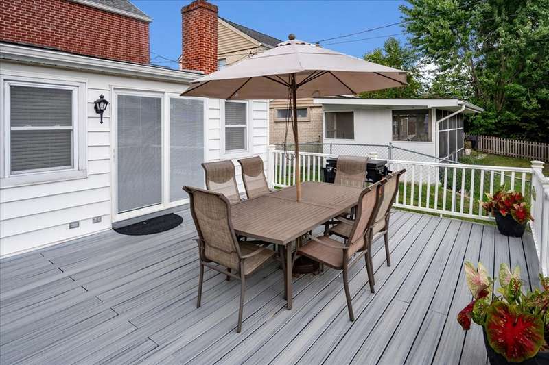 This charming brick home truly checks all the boxes. Nestled on a quiet, tree-lined street, it offers the perfect balance of character, comfort, and modern updates. Step inside to a spacious living and dining room with gleaming hardwood floors — an ideal setting for both everyday living and special gatherings. Beyond what you’d expect in a classic, well-built Fairfax home, this property surprises with a large family room featuring vaulted ceilings, skylights, and a cozy wood-burning fireplace. The updated kitchen shines with new countertops and stainless steel appliances, while a first-floor laundry room and full bath add everyday convenience. From the main level, step out onto the expansive composite deck and enjoy a backyard that truly extends your living and entertaining space. The partially finished basement offers flexibility for a playroom, exercise area, or home office, while the unfinished section provides ample storage and workspace. Upstairs, the primary bedroom features hardwood floors and a walk-in closet. Two additional bedrooms with ample storage and an updated full bath complete the second level. Roof and systems are all well-maintained. This property is move-in ready. With its thoughtful updates, versatile spaces, and timeless curb appeal, 214 Plymouth Road is ready to welcome its next owners.