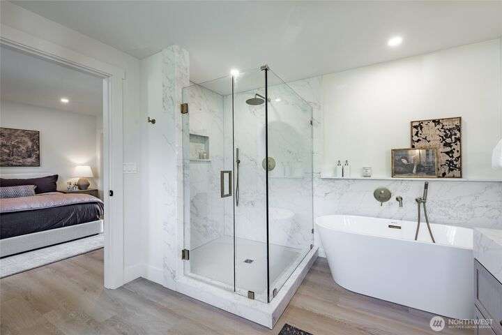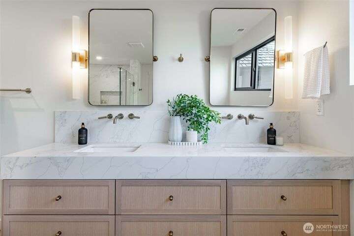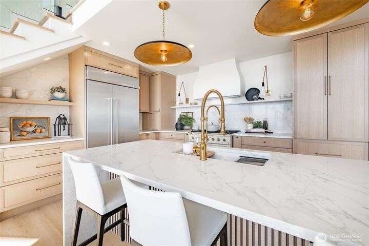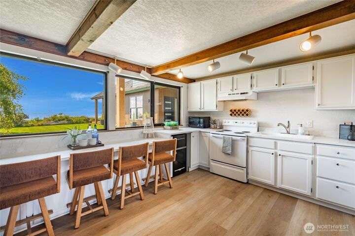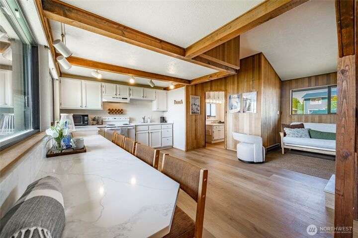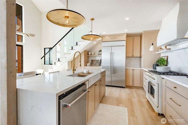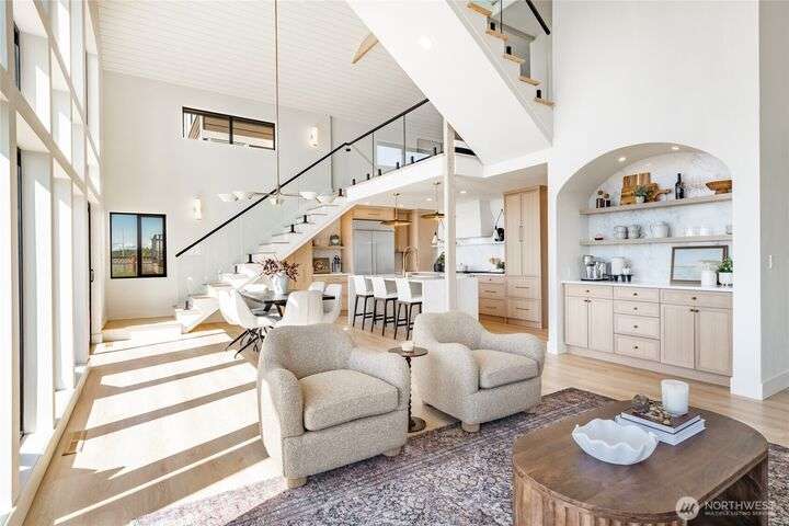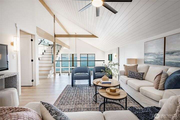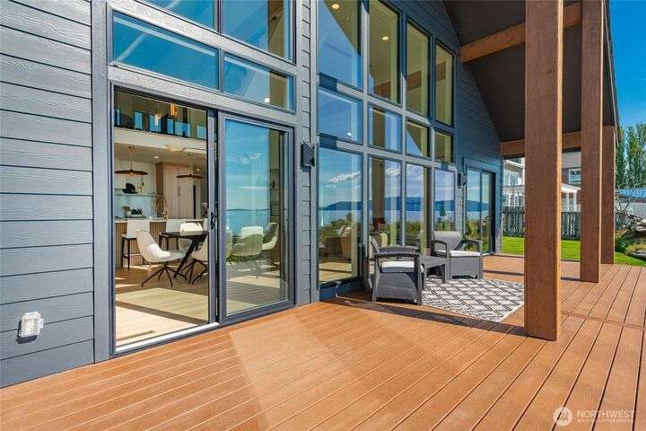 Absolutely spectacular west-facing oceanfront property with panoramic views of the San Juan Islands, Strait of Georgia & breathtaking sunsets! This fully renovated 3 bed, 2.5 bath home features 2,322 sqft of luxury, including 700 sqft of new living space, all-new windows, doors, siding, custom cabinetry, quartz countertops & high-end finishes throughout. Detached 550 sqft 1 bed, 1 bath ADU with private entrance has Airbnb history. Enjoy clubhouse, pool, golf, tennis, marina & world-class fishing/crabbing just steps away!