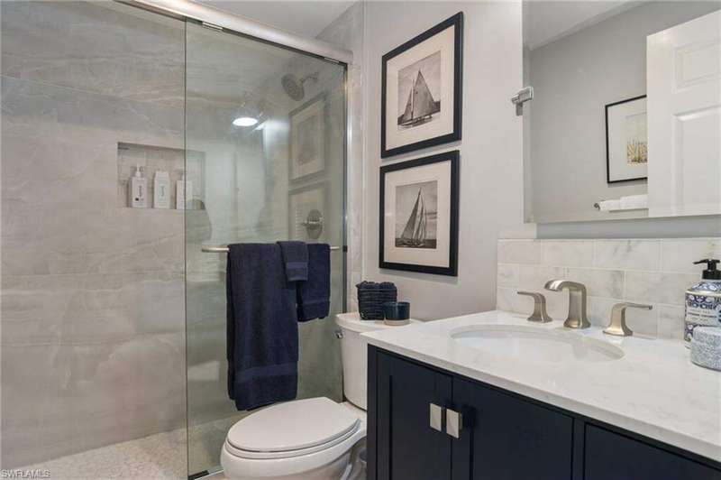 Beautifully remodeled light bright lake front property. Totally furnished & (turnkey) with sharp , new, current, modern, fresh, open and stylish design ...... Remodeled baths , showers and vanities with lovely fixtures . New kitchen, quartz counters, SS appliances, light bright space. ..... Great views of Wyndemere's golf and lakes. Spacious screened lanai , wood -look plank flooring throughout the living area. Safe & secure with electronic shutters for storms while away..... This lives like a home with all the work done for you..... Just move right in & enjoy Naples.