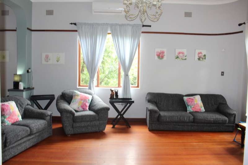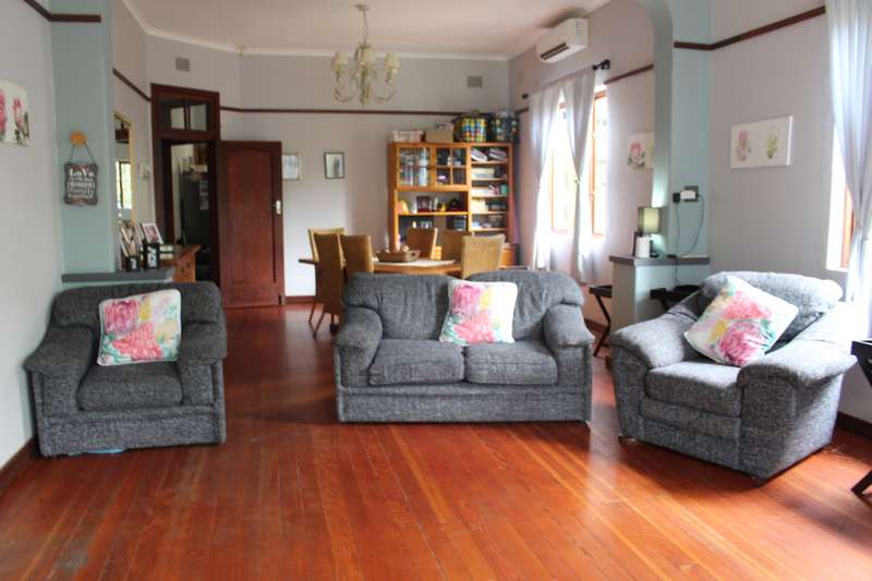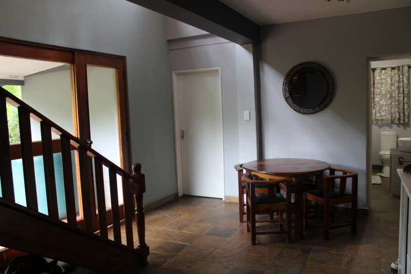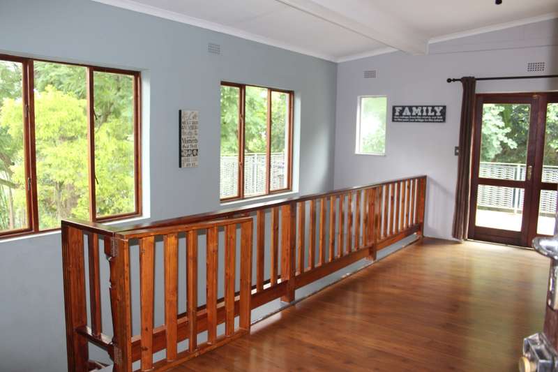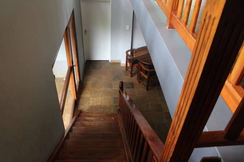 Despite being just moments from the heart of town, this stunning 2,256sqm property offers a sense of peaceful seclusion. Fully fenced with remote access, this double-storey home is nestled on a gently sloping stand, surrounded by a lush, established garden — ideal for children and pets. Upon entering through the front door, you’re welcomed into a spacious entrance hall that could easily double as a study or work-from-home area. Clever use of space beneath the staircase offers potential for storage or shelving. The ground floor features two well-sized bedrooms and a bathroom, perfect for guests or extended family. A charming wooden staircase leads to the upper level, where you’ll find a large open-plan lounge and dining area, beautifully finished with warm wooden floors. The well-appointed kitchen provides ample cupboard space and includes a gas stove, with an adjoining walk-in room for your fridges. A spacious laundry is situated in the room behind the double garage, nearby the kitchen. This level also features three bedrooms and three bathrooms, offering plenty of space for a growing family. The area between the lounge and staircase opens onto a generous balcony — the perfect spot to unwind and take in the stunning sunsets. Thanks to the property’s sloped design, the kitchen also provides access to the ground-level patio and medium-sized swimming pool — an ideal retreat during Barberton’s warm summer months. Additional features include a double garage with separate outside toilet. Move-in ready — this unique home offers comfort, space, and tranquillity, all within close proximity to town. Call me for an exclusive viewing.