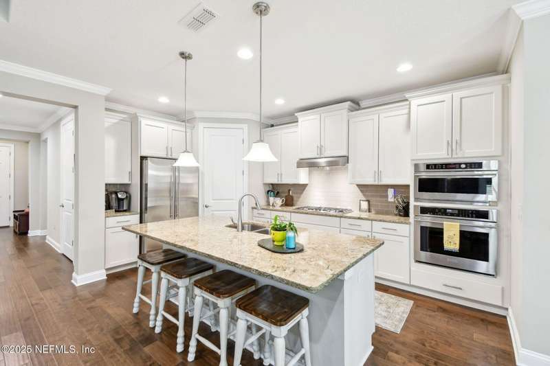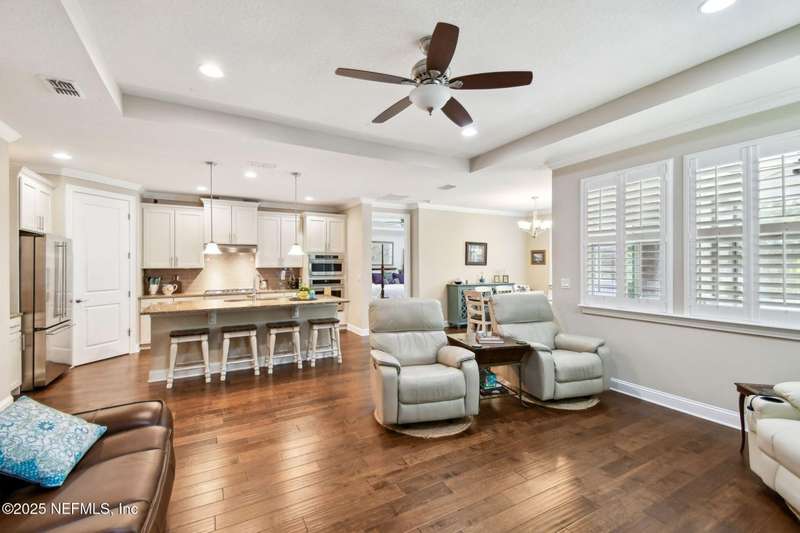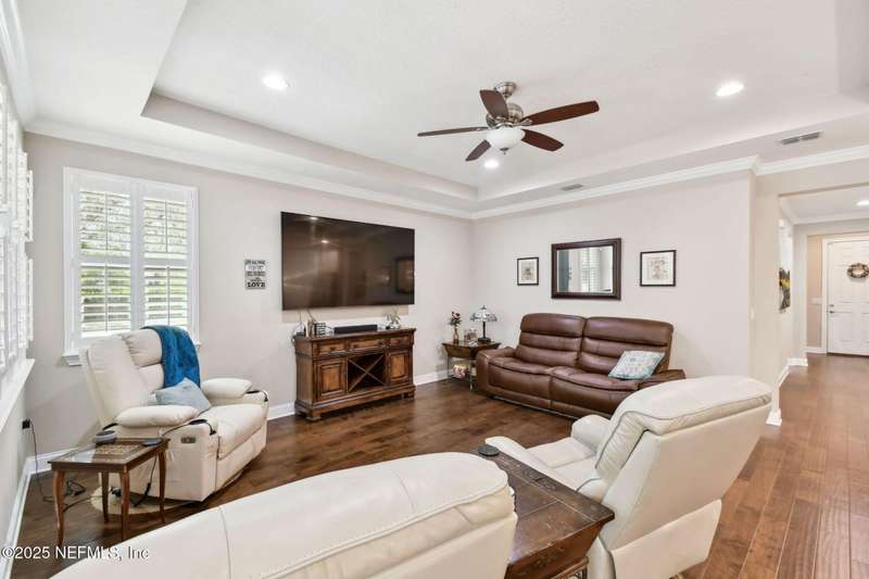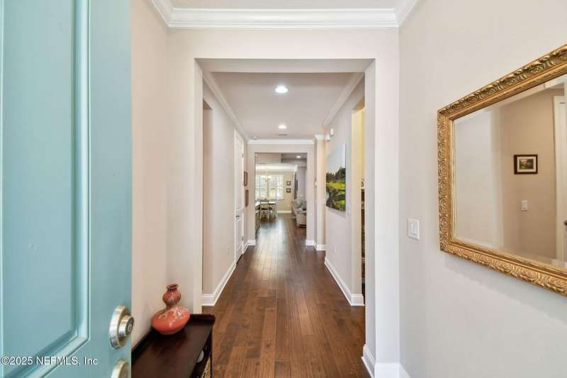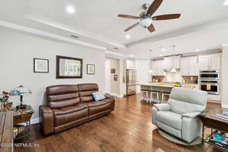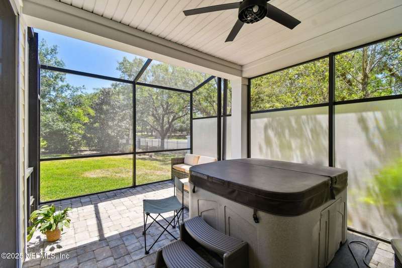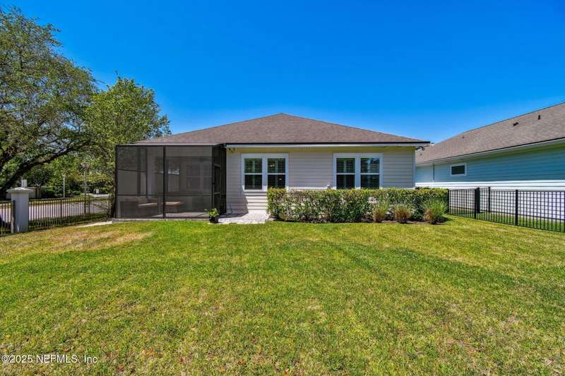 NO CDD FEE! LAWN MAINTENANCE INCLUDED! Located in the heart of St. Augustine's sought-after Legacy Trail in the World Golf Village, this beautifully landscaped golf course community offers convenience, charm, and comfort-just a short drive to beaches, shops, dining, and historic downtown.Nestled in a quiet street next to the Slammer & Squire golf course, this meticulously well-kept single-level home features wood floors in the main living areas, a gourmet kitchen with quartz countertops, GE Monogram appliances, gas cooktop, and 42'' maple cabinets with crown molding and high ceilings. Living room is also prewired for a sound system. Enjoy outdoor living with an extended screened-in patio-perfect for a hot tub-and a spacious yard with room for a pool.Additional features include pre-plumbing for a summer kitchen, natural gas, water softener, and laundry sink and the garage's electrical panel is wired for a natural gas generator.