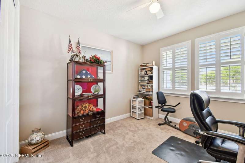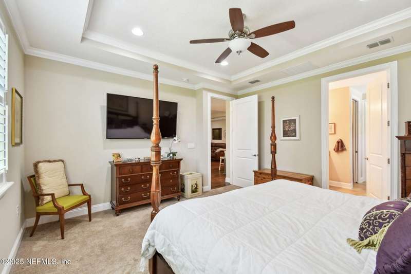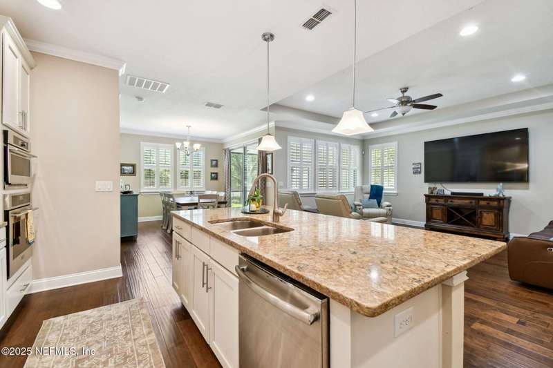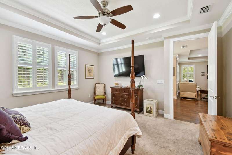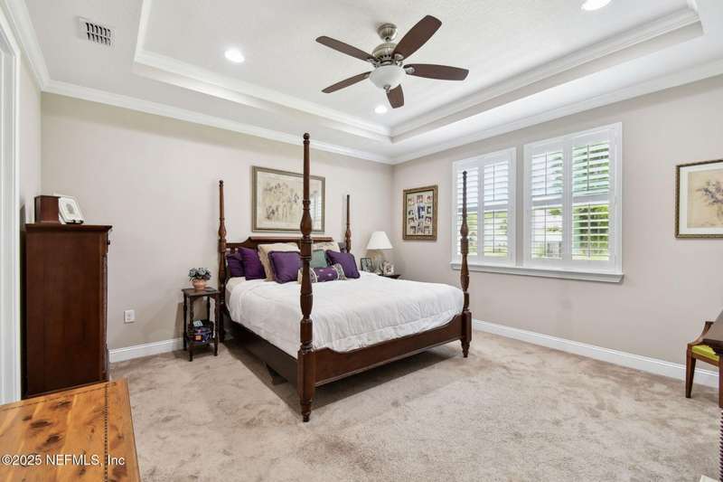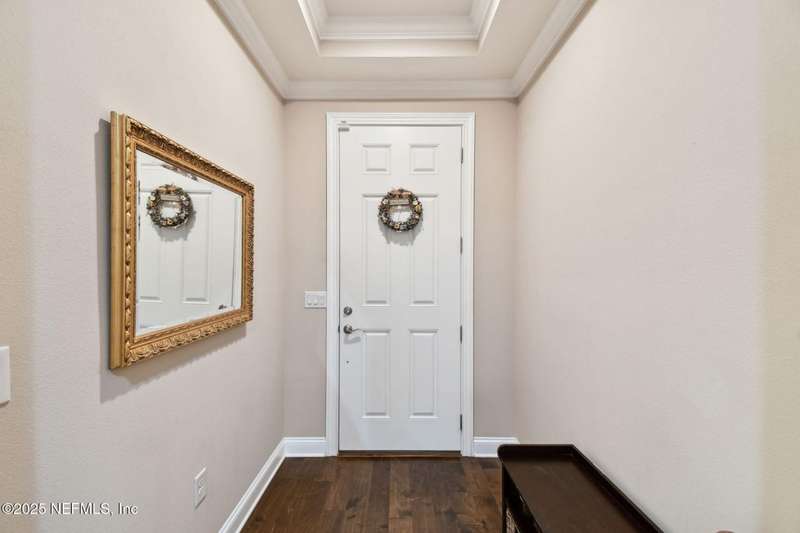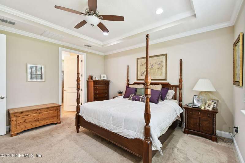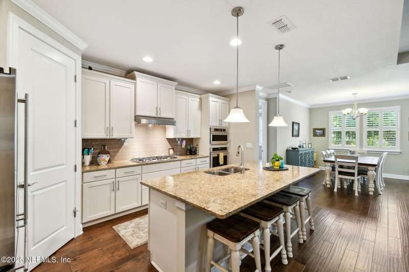 NO CDD FEE! LAWN MAINTENANCE INCLUDED! Located in the heart of St. Augustine's sought-after Legacy Trail in the World Golf Village, this beautifully landscaped golf course community offers convenience, charm, and comfort-just a short drive to beaches, shops, dining, and historic downtown.Nestled in a quiet street next to the Slammer & Squire golf course, this meticulously well-kept single-level home features wood floors in the main living areas, a gourmet kitchen with quartz countertops, GE Monogram appliances, gas cooktop, and 42'' maple cabinets with crown molding and high ceilings. Living room is also prewired for a sound system. Enjoy outdoor living with an extended screened-in patio-perfect for a hot tub-and a spacious yard with room for a pool.Additional features include pre-plumbing for a summer kitchen, natural gas, water softener, and laundry sink and the garage's electrical panel is wired for a natural gas generator.