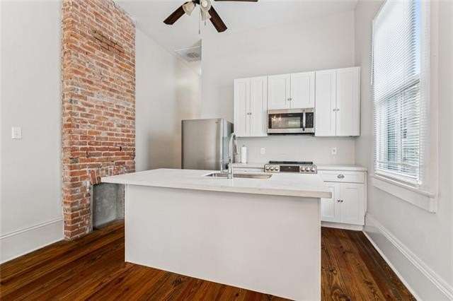This beautifully updated double in the heart of Old Gretna blends classic New Orleans character with modern comfort and charm. Offered unfurnished with water included (tenant responsible for remaining utilities), or fully furnished with all utilities covered by the owner for $2,000/month. Featuring two private bedrooms, one full bath, high ceilings, hardwood floors, and exposed brick, the home offers a stylish and inviting atmosphere. The open-concept living and dining area flows into a fully renovated kitchen equipped with quartz countertops, white cabinetry, stainless steel appliances, and generous storage. A washer and dryer are included for added convenience, and the spacious backyard, shaded by fully grown trees, provides a peaceful outdoor retreat. Ideally located with quick access to Downtown New Orleans and the Mississippi River, this turn-key property is available for immediate occupancy. Flexible lease terms are available, and pets are considered with a $500 non-refundable deposit.