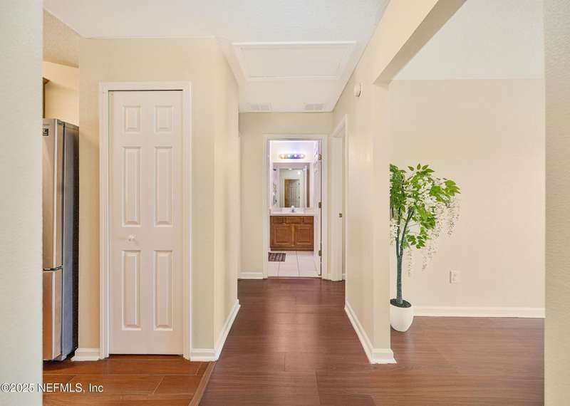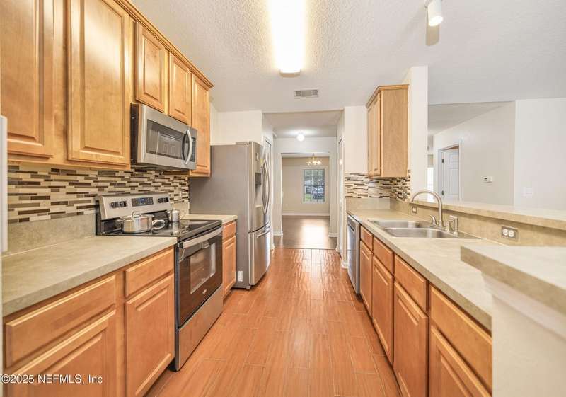 Welcome to this charming home located on a quiet cul-de-sac. Featuring a spacious open floor plan with split bedrooms, this residence offers both comfort and functionality. The large eat-in kitchen flows seamlessly into the formal dining room and living room, perfect for gatherings and family living.The exterior highlights include a brick front with hardy board siding, a yard sprinkler system, and pre-wiring for a security system. The property sits on a generous lot with a backyard that backs up to a preserve, providing privacy and tranquility.Conveniently situated just off Normandy Blvd, the home offers easy access to I-295, Chaffee Rd., and Herlong. The neighborhood amenities include a community pool and a children's playground, making it a wonderful place to call home.
