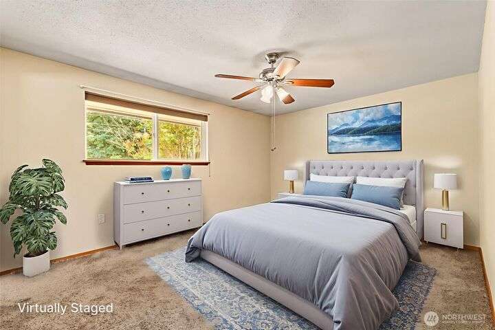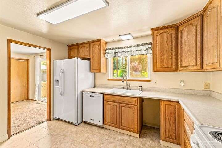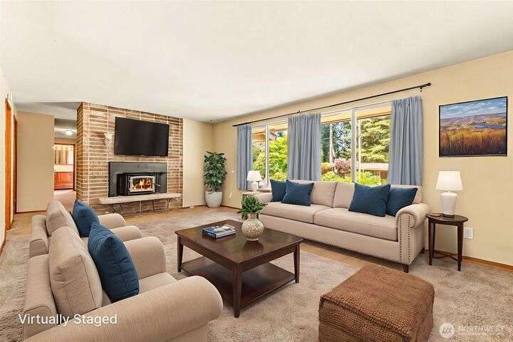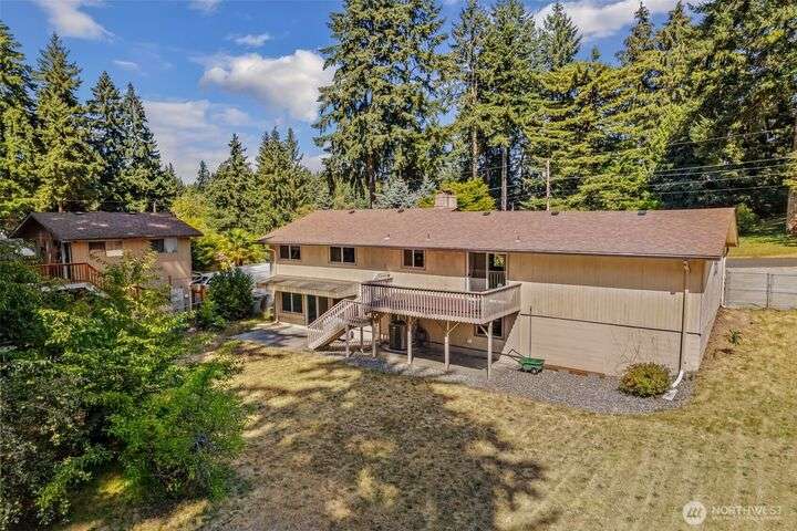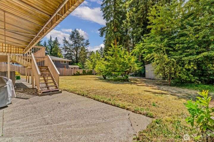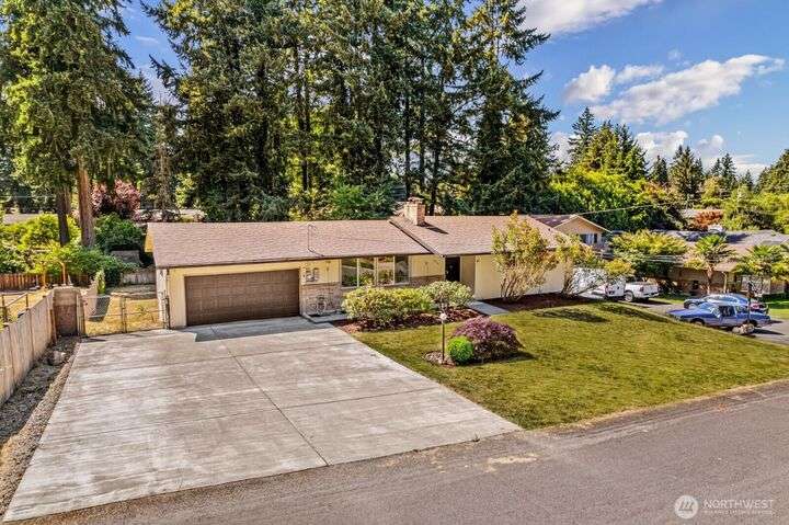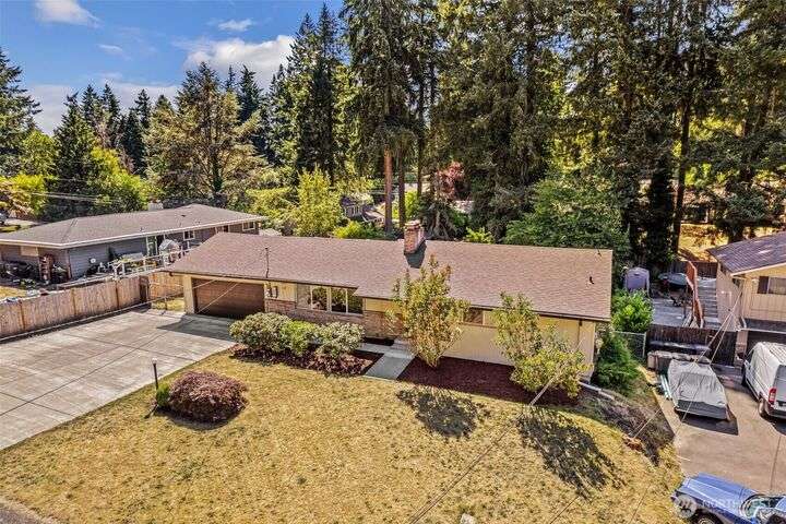 Welcome to your Lakewood charmer! This spacious 2,584 SF daylight rambler on a 1/3-acre lot offers versatility near lakes, schools, shopping, parks & JBLM. The bright upper level features 3 large bedrooms, including a primary suite w/ private bath, a sunny kitchen, and oak hardwoods under plush carpet. Downstairs you'll find a massive living/rec room, wet bar/kitchenette, bonus/4th bed potential, full bath, laundry & abundant storage—ideal for guests or MIL setup. Enjoy 2 fireplaces, updated windows, and a fully fenced backyard with fruit trees, sprinklers & brand new upper deck. Lower level has private entrance, covered patio & is wired for surround sound. Ample parking & space for RV or toys. A must-see!