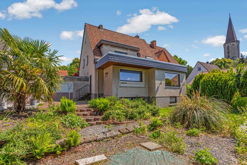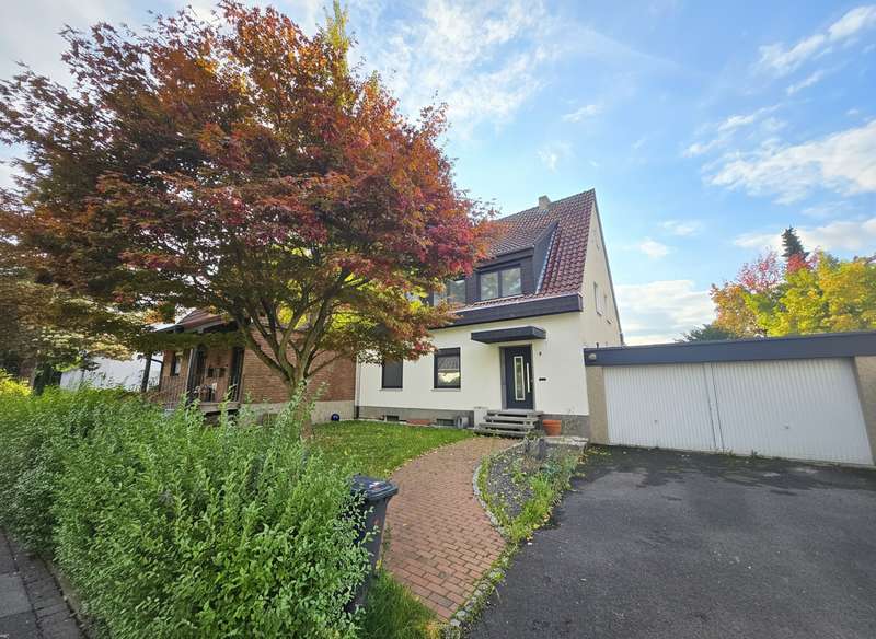 This charming detached house from 1954, which was extended in 1985, is situated in a sought-after and quiet residential area of Dortmund-Aplerbeck. The house combines timeless substance with modern elements and offers space for personal realization. The property was extensively renovated by the owners in 2024: The electrics, bathrooms, windows, doors and electric shutters were completely renewed. A modern wood-burning stove in the living room ensures cozy hours and rounds off the harmonious living ambience. The refurbishment has been largely completed - the floors and the heating system still need to be modernized, giving buyers the opportunity to add their own touches. On the first floor, you will find a spacious living and dining room with an open-plan kitchen - ideal for family life or sociable evenings. There is also a separate study, which can also be used as a guest room. There is also a luxuriously modernized guest WC. The upper floor offers two spacious bedrooms and a daylight bathroom with bathtub and shower enclosure, which was also renovated to a high standard in 2024. The attic is partially converted and can easily be used as an additional room, studio or retreat. The property has a basement and offers plenty of storage space as well as room for hobbies or housekeeping. There is also a further bathroom in the basement. A double garage completes the offer. The property offers plenty of space to develop - be it in the garden, on the terrace or through further design measures. This house is ideal for families or couples who want to combine modern living with their own creative freedom.
