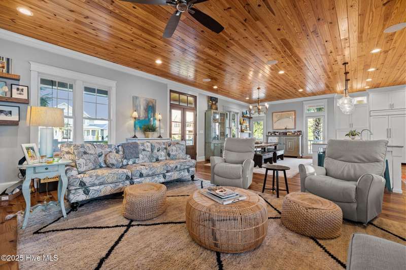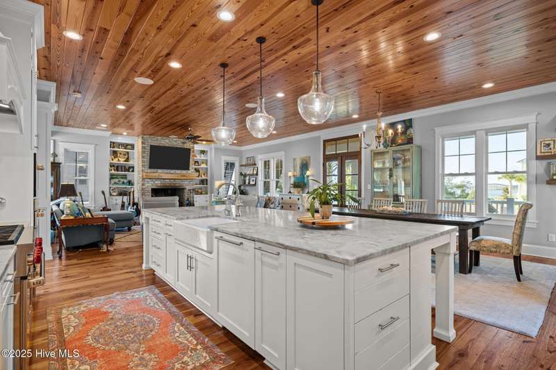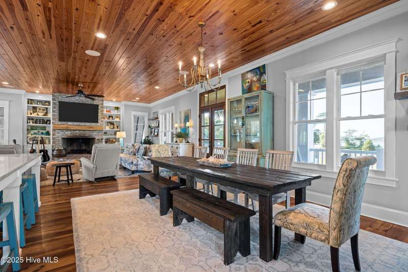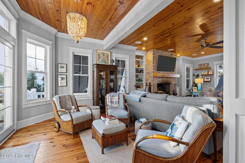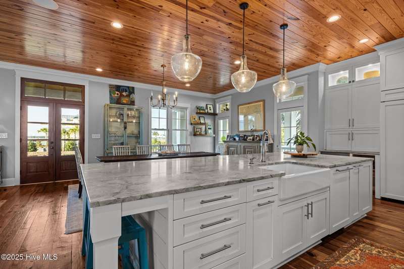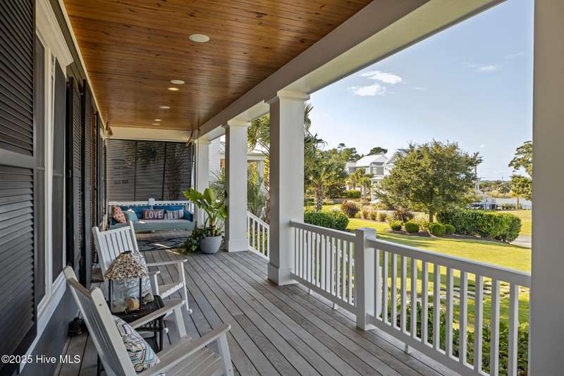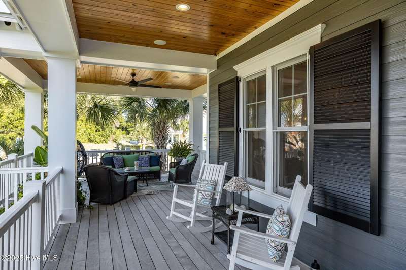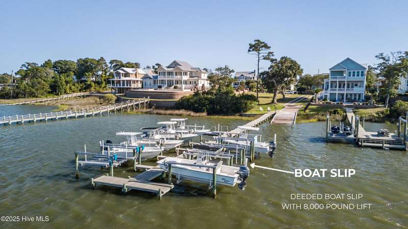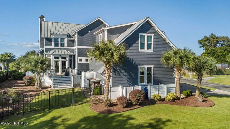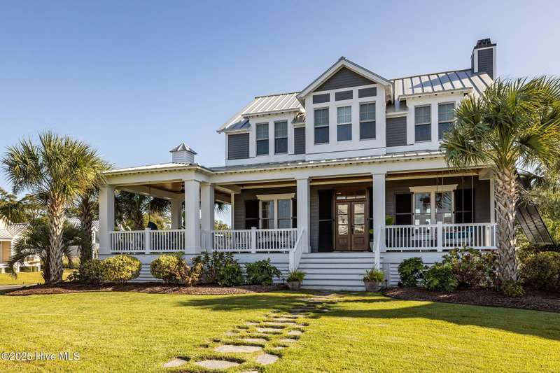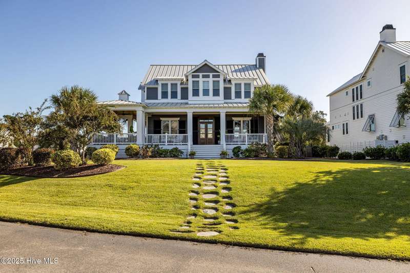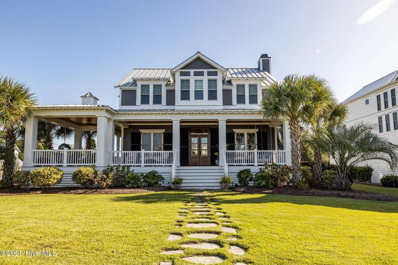 Welcome to 409 Sunrise Court, Emerald Isle, a stunning coastal home that includes a deeded boat slip just steps away, offering the perfect gateway to the water. Designed with uncompromising craftsmanship, this property blends timeless materials with modern convenience. The main living area boasts 10-foot ceilings and reclaimed hardwood floors from a historic tobacco barn, creating warmth and character throughout. A true chef's kitchen features a 6-burner Wolf range, second Wolf oven, Wolf microwave, Wolf warming drawer, and built-in refrigerator, an ideal space for entertaining or family gatherings. Designed for both comfort and resilience, this home includes a whole-house generator, functional hurricane shutters, two tankless hot water heaters, and a wood-burning fireplace; all offering peace of mind and convenience during any season. Details such as pine wood ceilings and ipe decking on the wraparound porch highlight the quality of construction, while a whole-home and porch sound system enhances everyday living. The thoughtful layout includes a 471 sq. ft. private guest suite, connected to the main house by a covered breezeway above the two-car garage. With its superior craftsmanship, premium finishes, and enviable amenities, including the deeded boat slip, this home embodies the best of Emerald Isle living. *Home was recently appraised 9/30/2025 for $1,950,000. Please reach out to listing agent for appraisal.