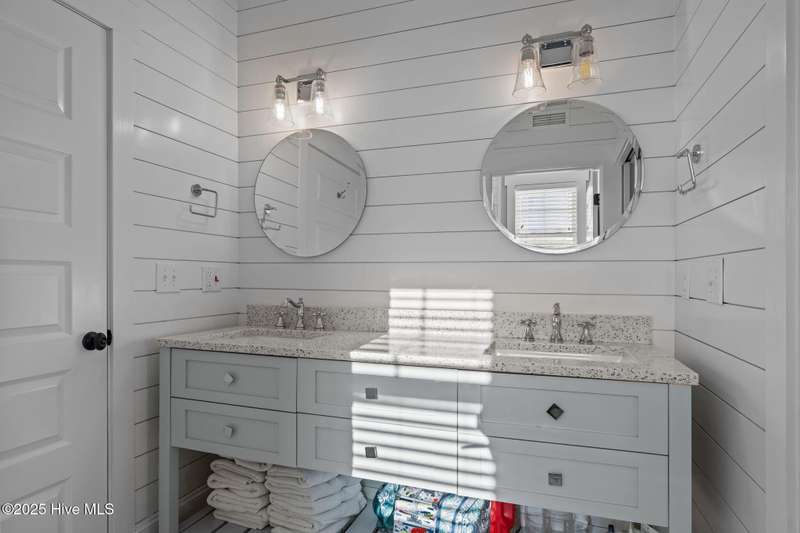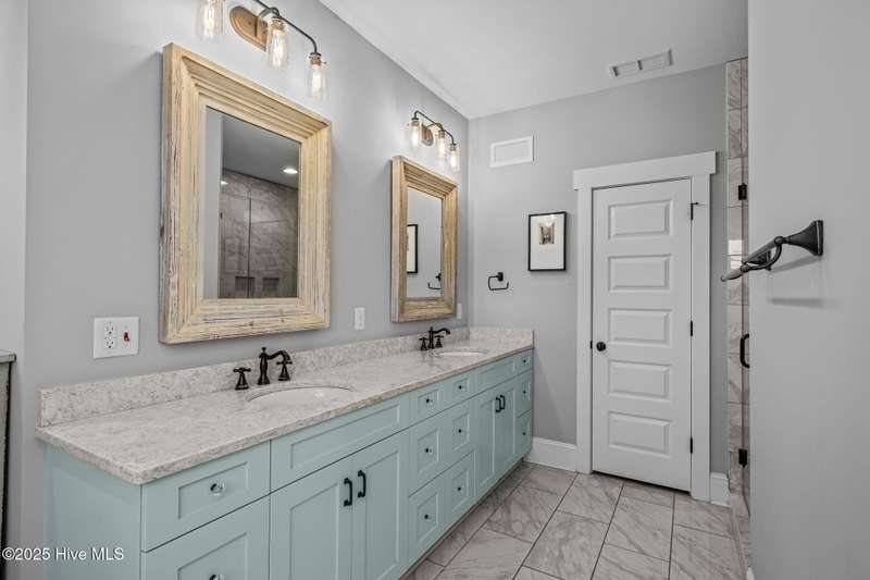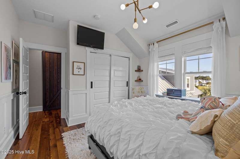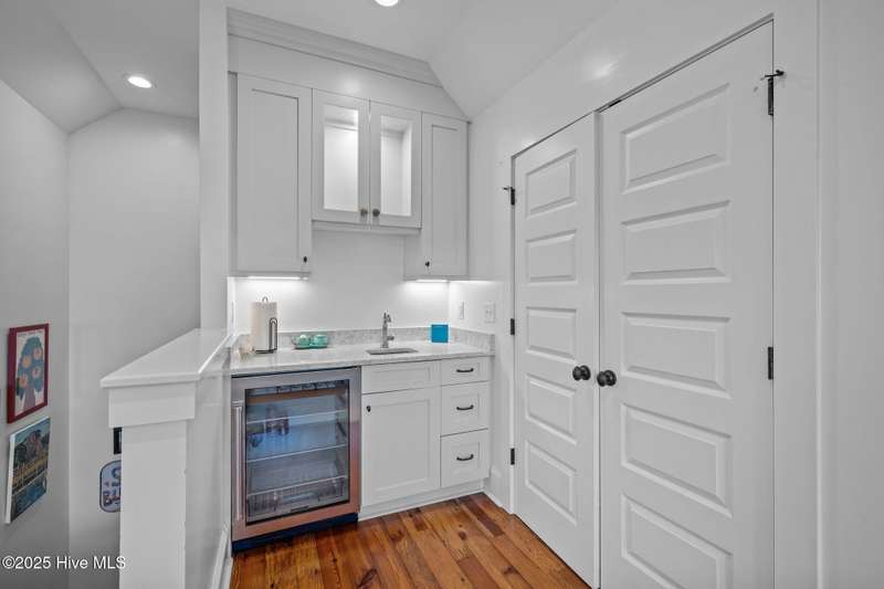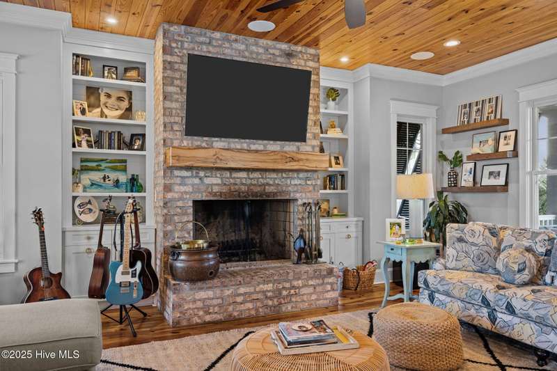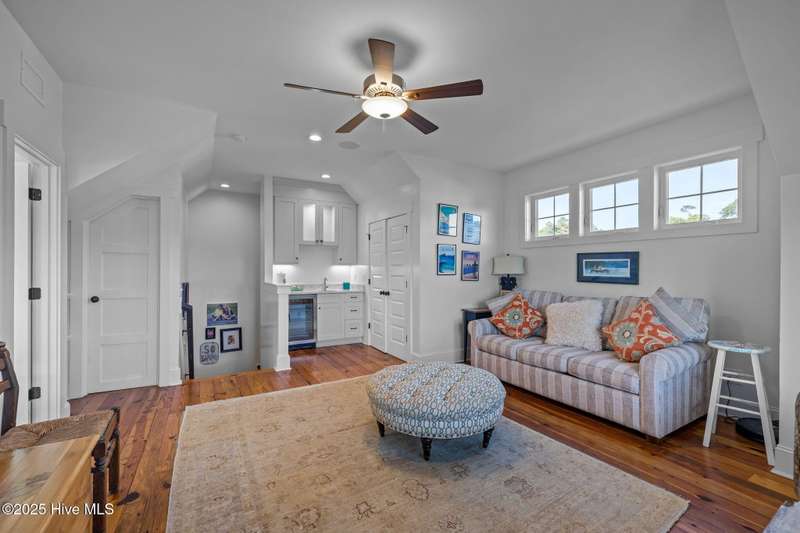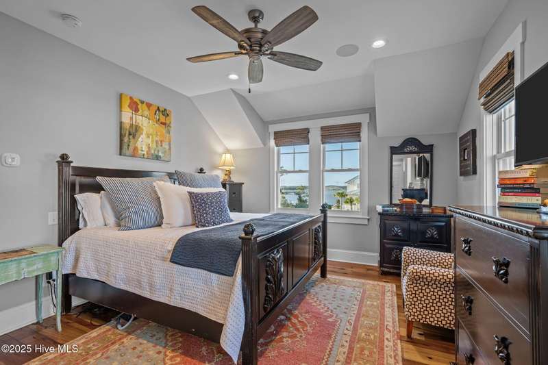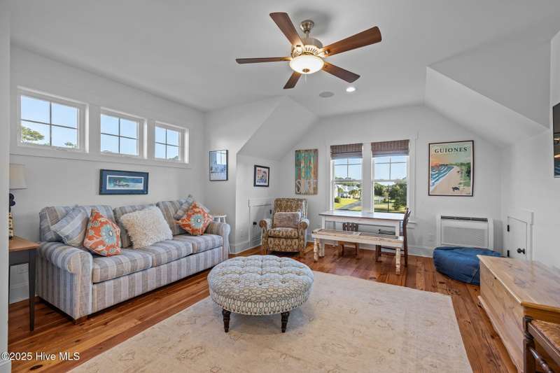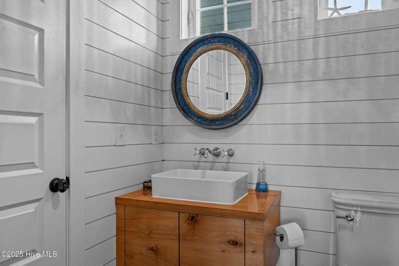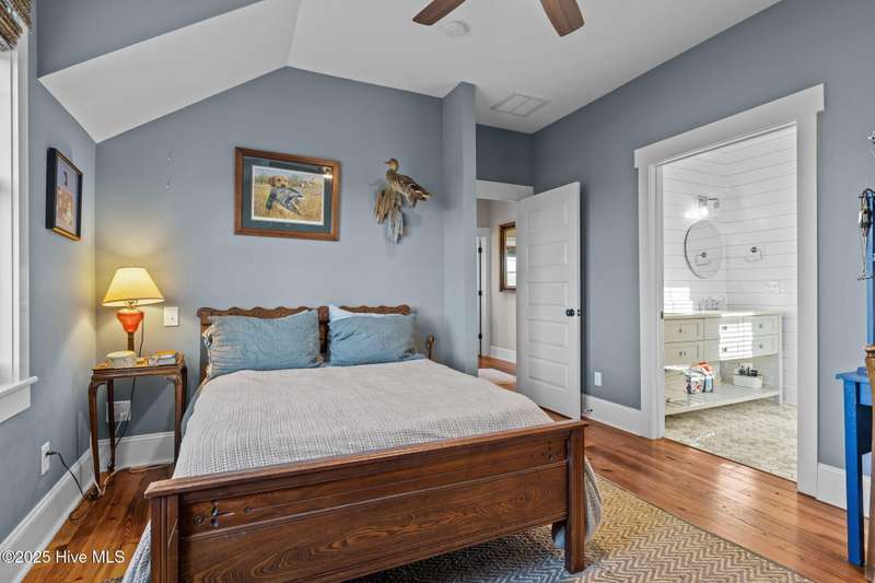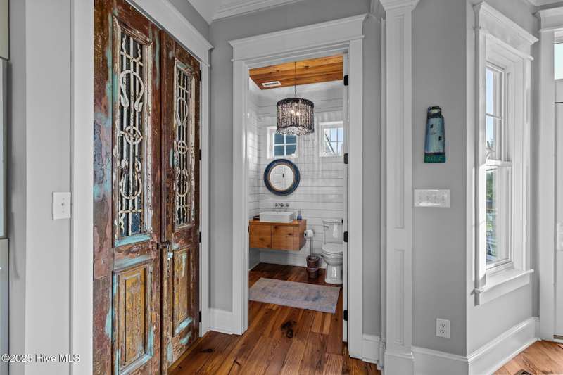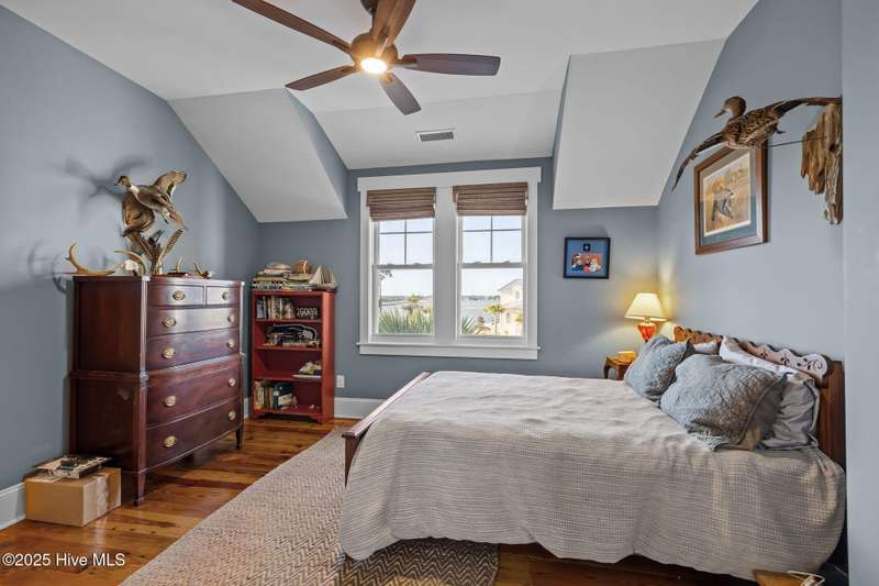 Welcome to 409 Sunrise Court, Emerald Isle, a stunning coastal home that includes a deeded boat slip just steps away, offering the perfect gateway to the water. Designed with uncompromising craftsmanship, this property blends timeless materials with modern convenience. The main living area boasts 10-foot ceilings and reclaimed hardwood floors from a historic tobacco barn, creating warmth and character throughout. A true chef's kitchen features a 6-burner Wolf range, second Wolf oven, Wolf microwave, Wolf warming drawer, and built-in refrigerator, an ideal space for entertaining or family gatherings. Designed for both comfort and resilience, this home includes a whole-house generator, functional hurricane shutters, two tankless hot water heaters, and a wood-burning fireplace; all offering peace of mind and convenience during any season. Details such as pine wood ceilings and ipe decking on the wraparound porch highlight the quality of construction, while a whole-home and porch sound system enhances everyday living. The thoughtful layout includes a 471 sq. ft. private guest suite, connected to the main house by a covered breezeway above the two-car garage. With its superior craftsmanship, premium finishes, and enviable amenities, including the deeded boat slip, this home embodies the best of Emerald Isle living. *Home was recently appraised 9/30/2025 for $1,950,000. Please reach out to listing agent for appraisal.