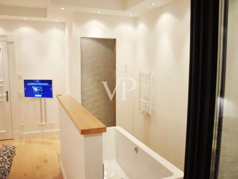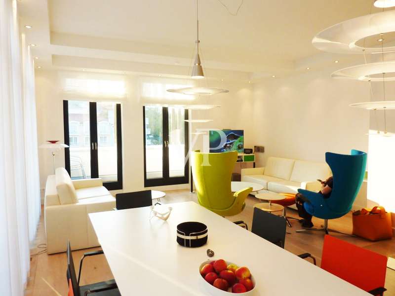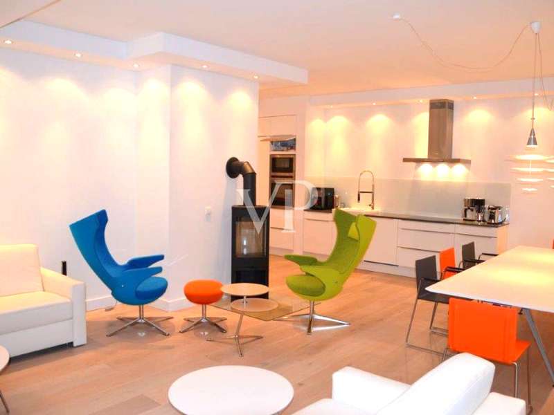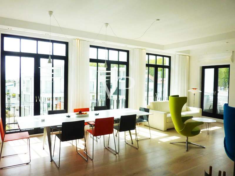 Living on Rügen means living by the sea: The beach villa "Philine" with a luxury apartment and a balcony of about 18 m² in the middle of a dune landscape is located in the Baltic resort Sellin. The villa is only a few steps away from the main beach of Sellin and the pier. A fantastic and incomparable view of the sea awaits you! In an exposed location on the high shore of Sellin, the villa "Philine" is enthroned and impresses especially with its modern functional architecture, noble design and a chill-out area with a 15x5 m pool in the middle of the dune landscape. With this exclusive apartment you also acquire VIP access to the sky swimming pool and 2 saunas on the top floor of the neighboring building, also with breathtaking views of the Baltic Sea. The light-flooded, exclusive apartment faces southwest and is equipped with extravagant, luxurious designer furniture and lamps. A fireplace invites to cozy leisure hours. Each room has been equipped with 3D flat screen TVs. An entertainment station with game console, DVD/CD player, radio etc. completes the technical ensemble. From the bathroom fittings to the fitted kitchen and the custom-made doors, only high-quality materials (such as natural stone, oak wood and manufactured tiles) were used. The excellent quality speaks for the German manufacturers. Underfloor heating provides a comfortable indoor climate. The kitchen with the induction stove not only harmonizes with the rest of the interior, but scores especially with its functionality. There are two bedrooms with attached en-suite bathrooms, including showers (floor-to-ceiling), free-standing bathtub in one of the bedrooms, designer washbasins, which are equipped with high-quality bathroom fittings, WCs as well as a guest WC. Special attention was paid to the architecture and equipment of the bathrooms during the planning. The property has floor-to-ceiling wooden windows, which provide a unique incidence of light and thus a lot of brightness in the rooms. Unusual is the special ceiling height of over 2.90 m as well as decorations with stucco and frieze, comparable to urban old buildings, which are rather rare on the island of Rügen. The individual and modern architecture of the villa "Philine" is particularly evident in the main portal and the staircase with built-in elevator. You will be thrilled by the solar heated outdoor pool. The whole is complemented by a laundry room, a cellar and an underground parking space. The exclusive apartment is completely furnished. The purchase price includes the fitted kitchen, cellar, an underground parking space as well as exclusive access to the indoor pool and SPA on the roof of the neighboring building.