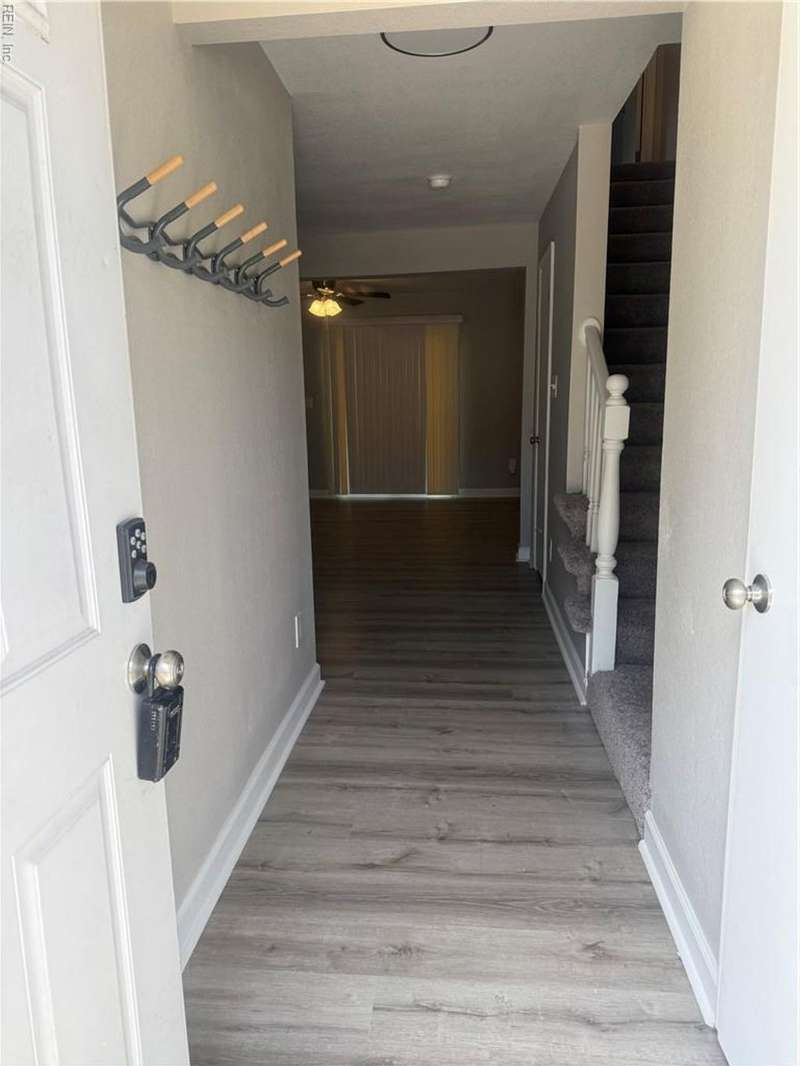 Welcome to Lynbrook Landing, a stunning end-unit townhouse located in the heart of Virginia Beach, VA. This property boasts three bedrooms and 2.5 bathrooms, including a master bath on-suite for added convenience. The kitchen is equipped with modern stainless steel appliances, a dishwasher, and a handy pantry. The luxury vinyl plank flooring adds a touch of elegance to the home, while the new carpet and fresh paint give it a clean, updated feel. The townhouse also features a fenced-in backyard with a storage shed, perfect for outdoor activities or extra storage. The off-street parking is a practical addition, and the in-unit washer and dryer make laundry days a breeze. The property also includes a decorative fireplace, adding a cozy touch to your living space. Lynbrook Landing is not just a home, but a lifestyle. It's located just a short distance from the beach, and is conveniently close to shopping and dining options. Plus, the community park is a great place to enjoy the outdoors.