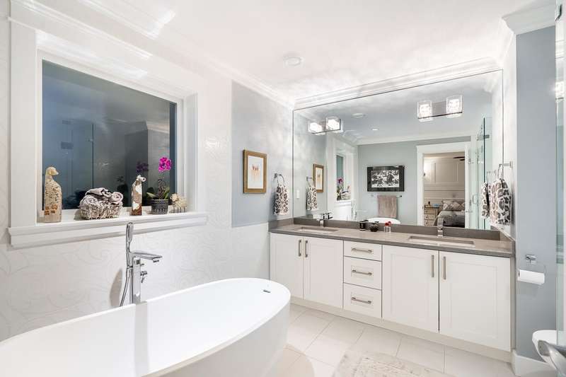 Exceptional craftsman-style residence in sought-after Ocean Park, blending timeless design with modern comfort. This 4-bedroom, 4-bath home is 2526 sqft features an office with coffered ceiling, engineered hardwood floors, custom millwork, and an open great room with gas fireplace and built-ins. The gourmet kitchen includes high-end appliances, oversized island, wine fridge, and walk-in pantry. Upstairs are four bedrooms and three baths, including a spacious primary with walk-in closet and spa-style ensuite. Enjoy the west-facing yard with covered deck gas hookups. Extras include radiant in-floor heating in the primary ensuite, on-demand hot water, Air conditioning and epoxy-finished double garage. Minutes to Ocean Park Village and White Rock Beach. Don't miss this one!