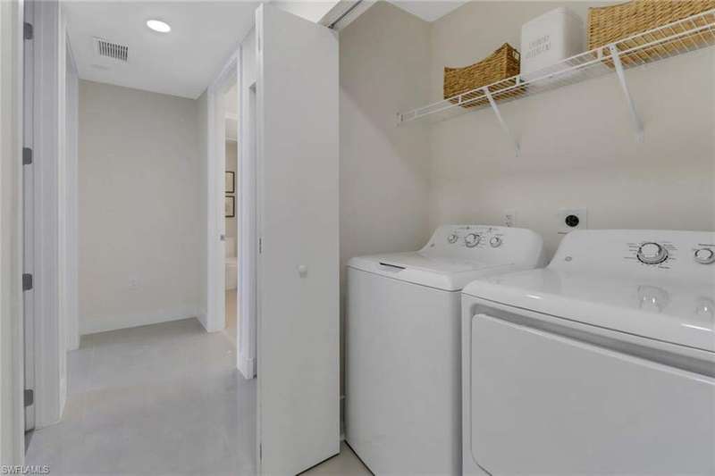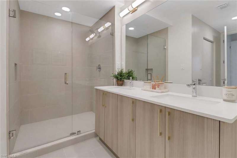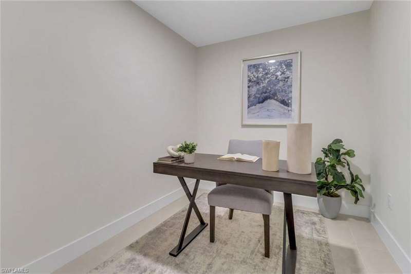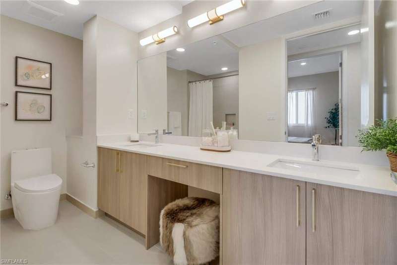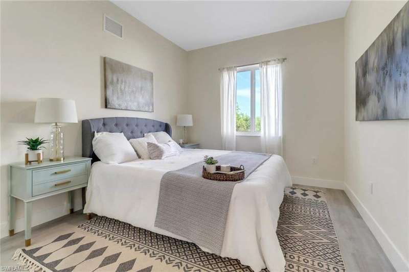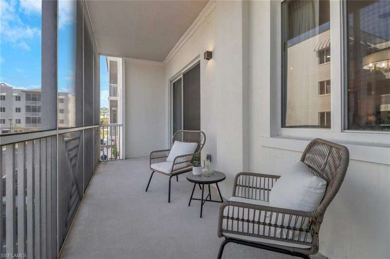 This beautifully maintained 3-bedroom, 2-bath top-floor condo offers a comfortable and functional layout, including a den and a versatile interior storage space that can serve as an office. With 1,616 sq. ft., the open-concept floor plan features a gourmet kitchen with quartz countertops, stainless steel appliances, and designer cabinetry. Both bathrooms include dual vanities, and the spacious living room opens to a large balcony. Washer and dryer inside unit. One assigned covered parking space. Residents enjoy a full range of amenities, including two pools, tennis and pickleball courts, bocce ball, an 18-hole golf course with pro shop and cafe, and a clubhouse with a fitness center, library, and billiards room. Located just 5.5 miles from the beach and minutes from Bonita Springs' shopping, dining, and entertainment, this home offers a perfect balance of convenience and retreat-like living.