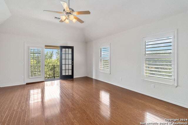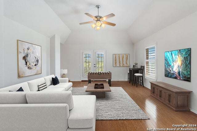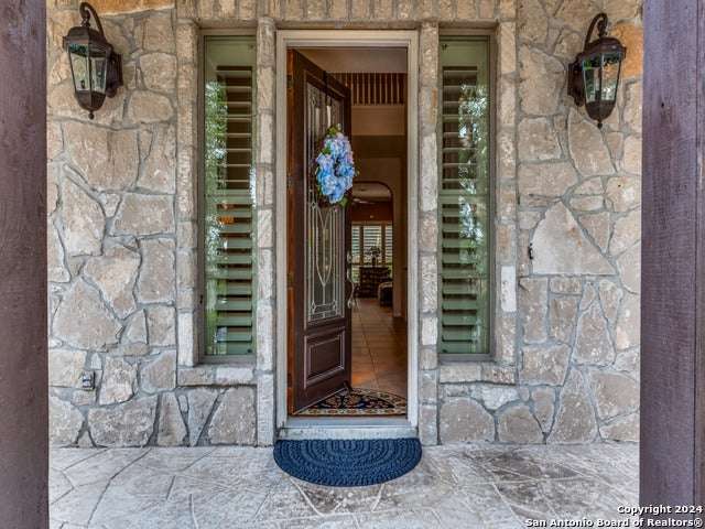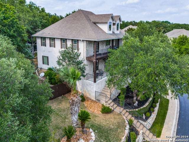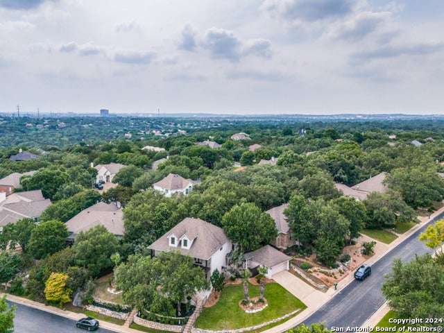 Exquisite VIEW home nestled in the highly desirable community of Emerald Forest! This elegant residence is situated on an oversized .33acre lot with breathtaking views! Built by Sitterle, the home of 5 bedrooms, 3.5 baths, a formal dining room and a game room with 3,508 sq.ft. of living space. Stunning curb appeal with custom landscaping, towering Palms and lighting! You are greeted to the property by a covered patio that runs the length of the home, and upon entering you are welcomed by the light filled 2 story foyer. An inviting formal dining room is located off the entry. Beyond is the beautiful family room that features a dramatic stone fireplace focal point and views to the private garden. The perfect open plan of living room to breakfast area and the kitchen for an ideal layout. Gourmet kitchen with breakfast bar, island, generous 42" cabinetry, granite counters and JennAir gas stove and oven! The gorgeous Primary bedroom is a serene retreat with an adjoining 5-piece spa en-suite and 2 closets. The luxurious bath features 2 vanities, a jetted garden tub and a separate shower. Upstairs are 4 oversized secondary bedrooms, 2 baths and a large game room! 1 bedroom and the game room have outdoor access to the large, covered deck to enjoy amazing skyline views! A secondary bedroom with French doors and wood flooring is currently used as an office. A half bath and laundry on the 1st floor finishes the home's plan. Step outside to the idyllic backyard that features an enchanting gazebo for gatherings and an outdoor kitchen set in a sizable garden with mature trees and landscaping! This is the perfect stop for barbecues, entertaining or relaxing at home in your private paradise! The fence and gazebo have been freshly painted. Upgrades and improvements include: wood flooring in the dining room, hall, Owner's suite and closets, stairwell, game room and office, wood plantation shutters, audio and video wiring, room dimmers, Culligan water softener, gazebo, outdoor kitchen, front iron pole fencing, automatic outdoor lighting, patio deck staining and leaf guard rain gutters. The property features graceful curb appeal and a detached 2 car garage with covered walkway to the kitchen for convenient accessibility. This splendid residence is a rare find in such a coveted neighborhood! Conveniently located with easy highway access, to shopping and schools (NEISD). Emerald Forest is gated, with a 24-hr. manned security entrance and offers wonderful amenities of Pool venue, Sports courts and Walking trails!