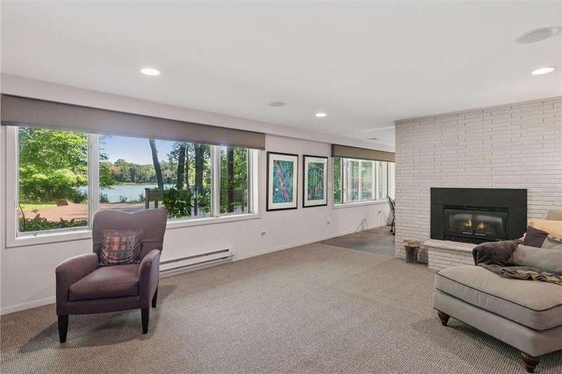 Nestled in the gently sloping landscape of Indian Hills, this midcentury walkout rambler overlooks Indianhead Lake. Featuring 95 feet of lakeshore, with a dock, this serene lake provides idyllic views and many options for water activities such as paddle boarding and fishing. This home has been well maintained and tastefully updated throughout. A new roof was installed in 2020. Many quality improvements--three tile baths, rich slate flooring, custom cabinets and storage, solid surface countertops and upscale kitchen appliances enhance both floors; there are complete kitchens on both the main and lower levels. The lower level also features an over-sized bedroom, family room with double-sided fireplace and one of the three baths. The four season main floor porch also overlooks the lake and has a fireplace for cooler nights. Just blocks to Braemar golf course, the Braemar ice arena, Edina public schools, hiking and biking trails and the major highways which provide access in minutes to MSP airports, Southdale and downtown Minneapolis. Truly an unbelievable natural oasis in an urban setting!