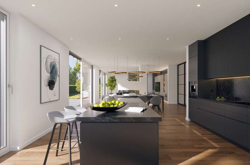 Isarflimmern", a building project by Tschunke Houdek Immobilien GmbH, combines state-of-the-art living with well thought-out architecture, great attention to detail and a clear focus on quality in a perfect location. Isarflimmern is the name given to the area from Munich to the source of the Isar (called the "raging" by the Celts and still the raging one today), a unique paradox between the sophisticated cosmopolitan city of Munich, the headquarters of 7 DAX-listed global corporations and centuries of tradition in the most beautiful natural landscape. Isarflimmern is a Bavarian attitude to life or, to give it its full name, the former Bavarian Prime Minister Edmund Stoiber, who lived in the region. Bavarian Prime Minister Edmund Stoiber "Laptop and Lederhos`n". Villas and modern detached and semi-detached houses characterize the architectural face of the community. On the high banks of the Isar, in the Zell district, a multi-party house with only 3 residential units and a top-class detached house are being built - pure Isar flicker!