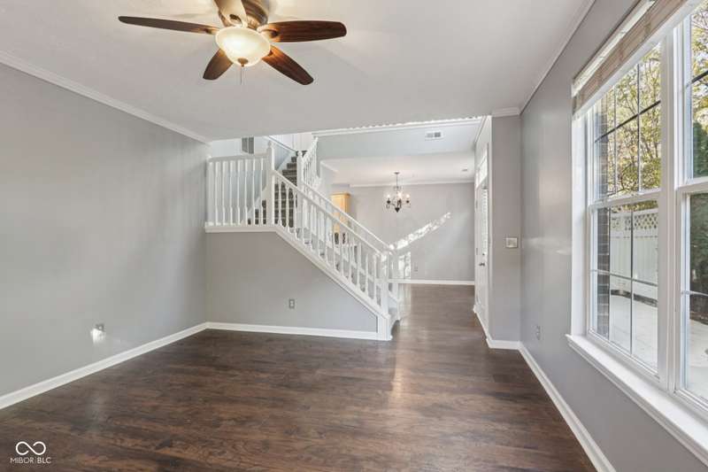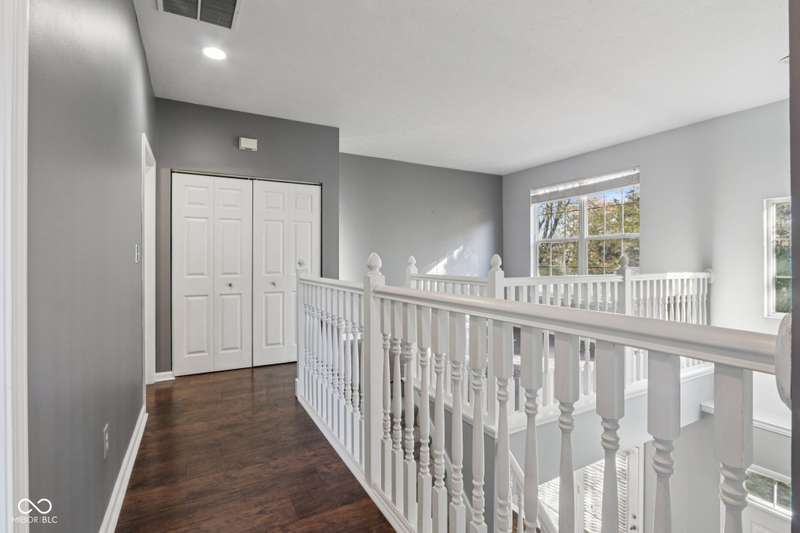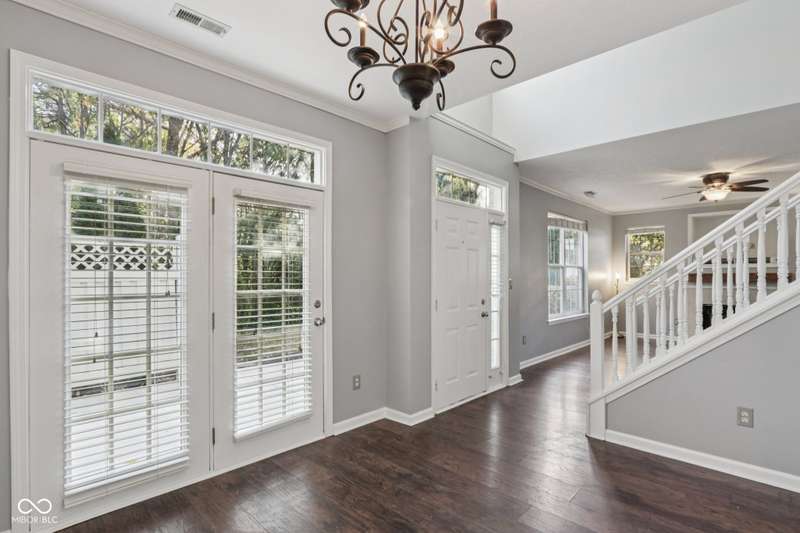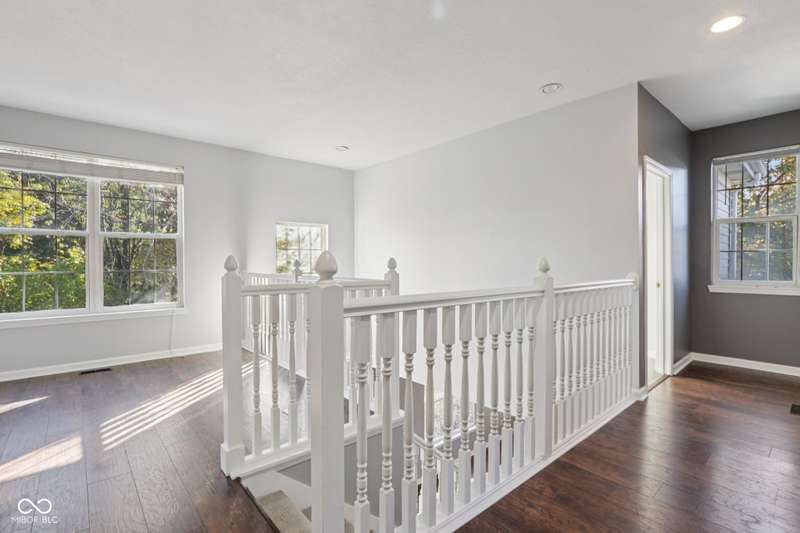 Welcome to this well-maintained end-unit condo in the desirable Towne Park neighborhood on Indy's north side! Once inside the gated community, the condo's entrance feels very private as it faces the mature tree line. The freshly painted and inviting entryway allows your eyes to see the beautiful flooring on the main level, as well as the custom crown moldings in the dining and living areas. This 2 bedroom plus a loft, 2 1/2 bathroom condo has an abundance of natural light with the extra windows and a new mantle in the living room. Extra storage space was thoughtfully added under the stairs in the coat closet. Admire the lovely backsplashes in the kitchen, the half bath, and the guest bathroom upstairs. The half and guest baths both have beautiful framed mirrors as well. As you head upstairs, notice the spacious loft area that can be used in a variety of ways, including but not limited to an office, a play room, or a reading nook just to name a few. The same LVP that is on the main level can be found upstairs in the loft, the hallway, and the primary bedroom! Your laundry closet is equipped with large cabinets for extra storage. Both bedrooms have lots of natural light and big closets. Recent updates include: New water heater (Sept 2025), New toilets in half and guest bathrooms (Sept 2025), New mantle (2025), Vents cleaned (Spring 2025), New kitchen faucet (2024).