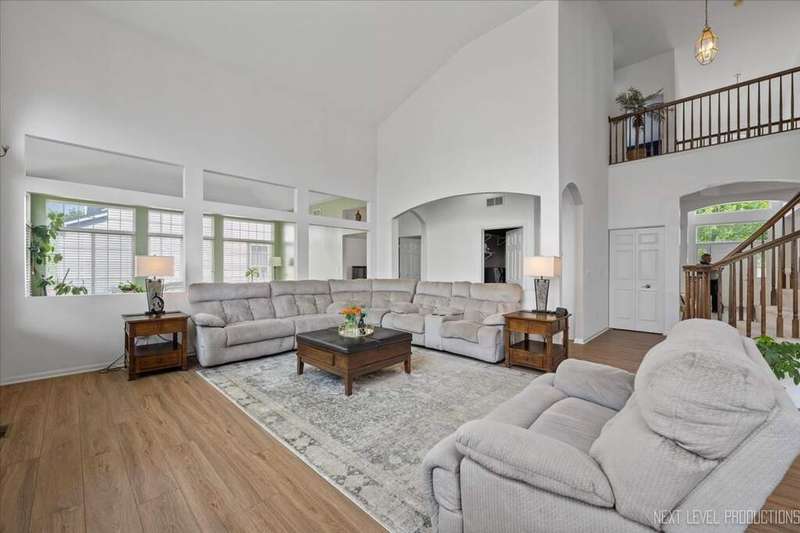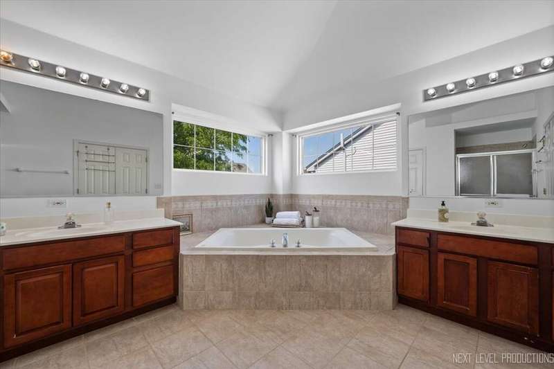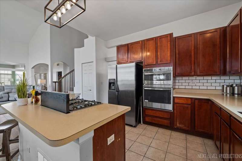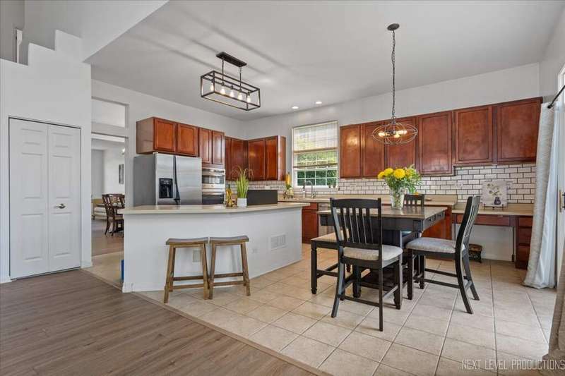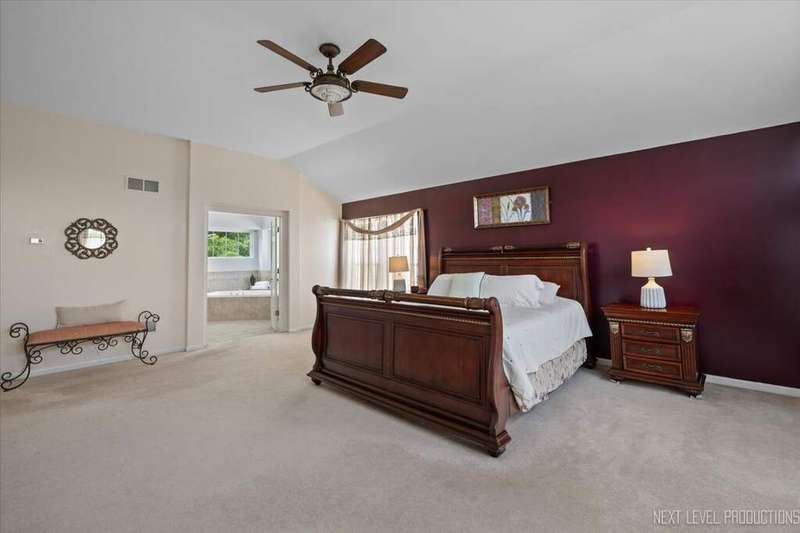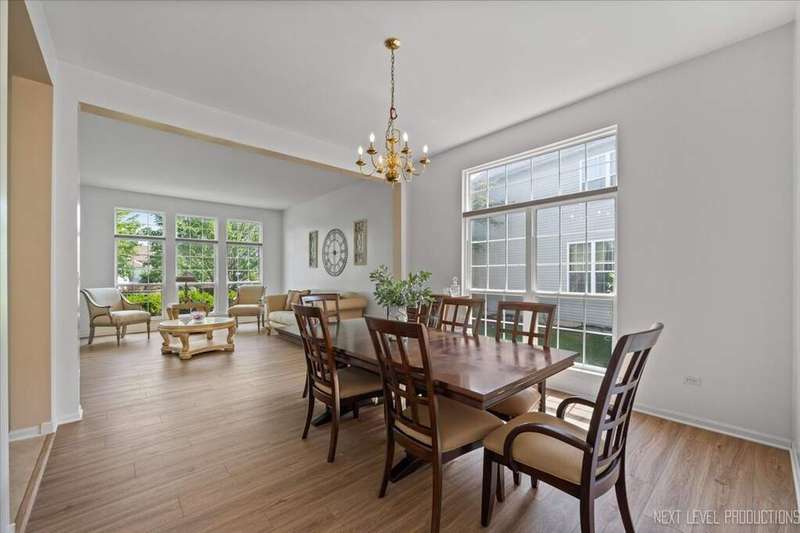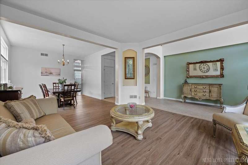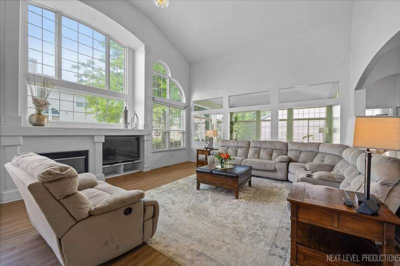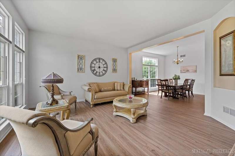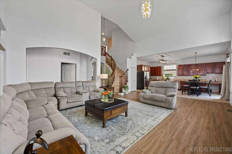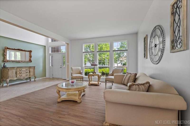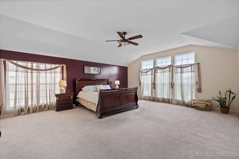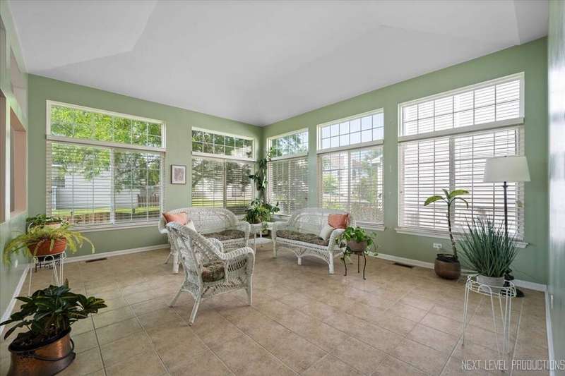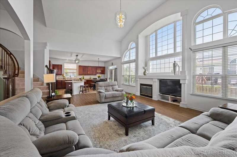 Welcome to this impressive two-story brick-front home in Bolingbrook's sought-after Foxridge Farms community, zoned to highly rated Plainfield District 202 schools. With 4 bedrooms, 4 full baths and a finished basement, this home offers a versatile and expansive layout ideal for today's lifestyle. Step inside to find formal living and dining rooms, a bright and open kitchen featuring a double oven, cooktop, microwave, eat-at island, and separate table space-ideal for everyday living and entertaining. The stunning great room, lined with windows and filled with natural light, anchors the main level as the true heart of the home. Adjacent to this a large sunroom offers the perfect spot to relax, sip coffee, or soak in year-round sunshine. A first-floor bedroom or private office sits just off a full bath-perfect for guests or multigenerational living. Upstairs, a dramatic catwalk hallway connects four spacious bedrooms, including the generous primary suite, all while offering beautiful views of the living spaces below. The finished basement is built for fun and entertainment with a full bath, designated bar area, movie viewing space (theater screen conveys), and plenty of storage. A 3-car garage, first-floor laundry room, and a backyard ready for your personal touch round out this incredible home. Light, space, and endless possibilities to make it your own-come see all this Foxridge Farms gem has to offer!