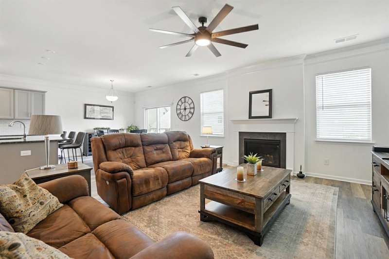 Tucked away on a wide cul-de-sac lot in the sought-after Kellswater Bridge community, this ranch-style home offers 3 bedrooms, 2 baths, and over 2,000 sqft of open living. Recently painted and updated with new carpet in 2024, the light-filled layout features generous living and dining areas. The spacious kitchen shines with granite counters, stainless steel appliances?including a refrigerator less than 2 years old?and a large island with ample storage. The oversized primary suite includes two walk-in closets and plenty of space to relax. Enjoy outdoor living on the cozy covered front porch or newly stained back deck, with in-ground irrigation keeping the lawn pristine. Resort-style amenities include a clubhouse, pool, fitness center, sports courts, dog park, and greenway trails. Minutes from downtown Kannapolis with boutique shopping, dining, and Atrium Health Ballpark.