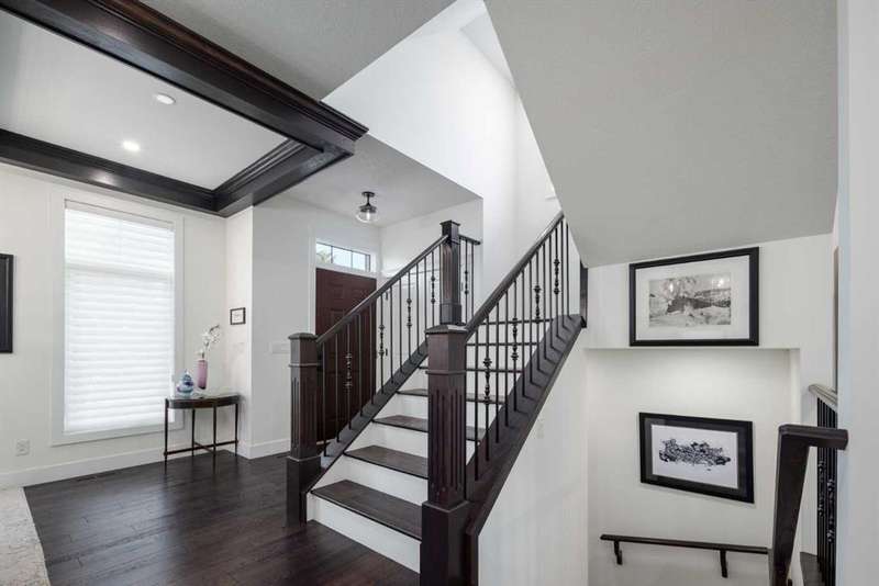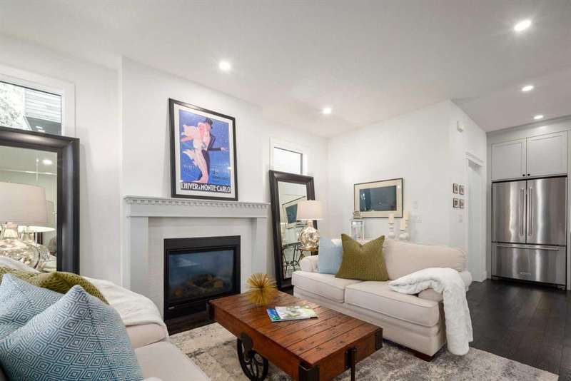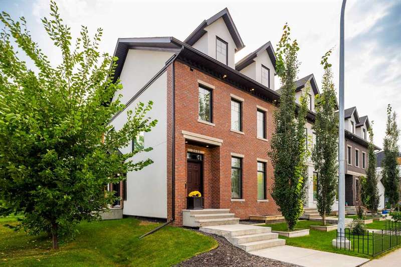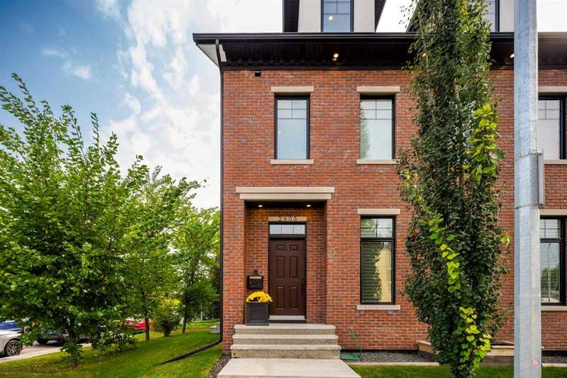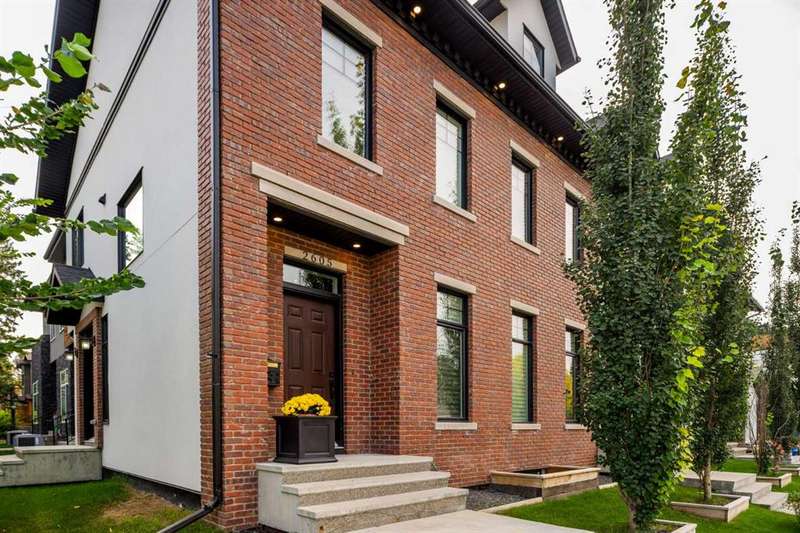 A masterclass in timeless design, this end-unit townhome pairs the charm of a Brooklyn brownstone with the precision of modern craftsmanship. Built by Icon Design and Development Ltd., every element has been thoughtfully curated to create a home that is both refined and functional. The striking red brick façade with black-clad windows sets the tone, while natural light floods through the extra side windows, highlighting coffered ceilings, custom millwork, and rich hardwood floors that flow seamlessly up the stairs to the second level, a premium detail that enhances the sense of sophistication throughout. The main floor is anchored by a statement fireplace with a custom mantle and a designer kitchen featuring bespoke tilework, a sculptural hood fan, and thoughtful built-in storage. On the second level, three bedrooms, a 4-piece family bath and a dedicated laundry room await, including a serene primary suite with tailored built-ins and a spa-like ensuite boasting designer lighting, a glass-encased shower, and exquisite tilework. Above it all, a third-story loft offers a bright and versatile retreat. Perfect as a media room, art studio, office, playroom, or private lounge. The fully finished lower level extends the living space with a spacious recreation room, fourth bedroom, and full bathroom, while central air conditioning ensures year-round comfort. With the convenience of a private single detached garage and a location just minutes from downtown, Marda Loop, and the amenities surrounding Signal Hill, this residence is more than a home, it’s an elevated lifestyle in one of Calgary’s most desirable communities.