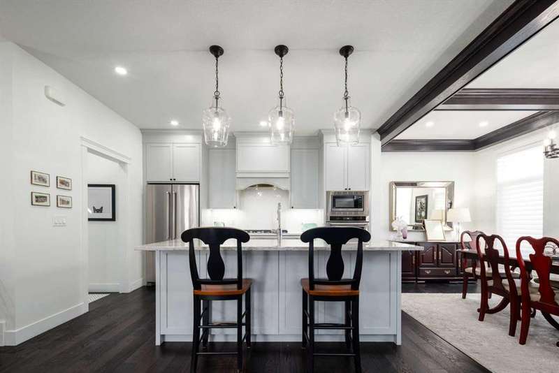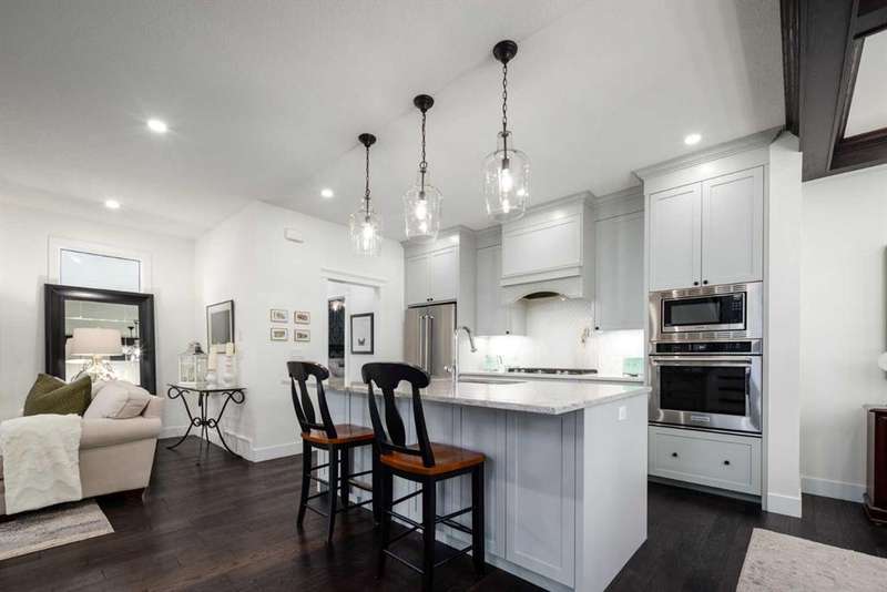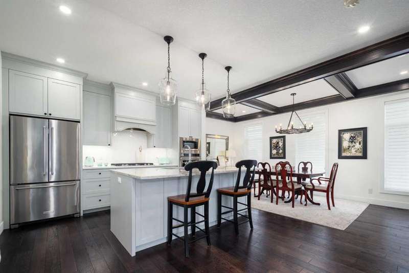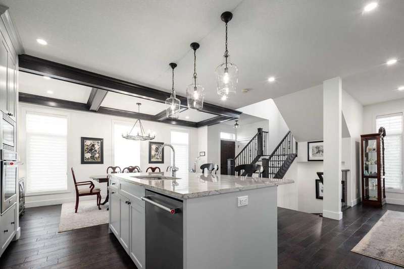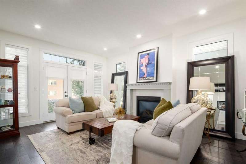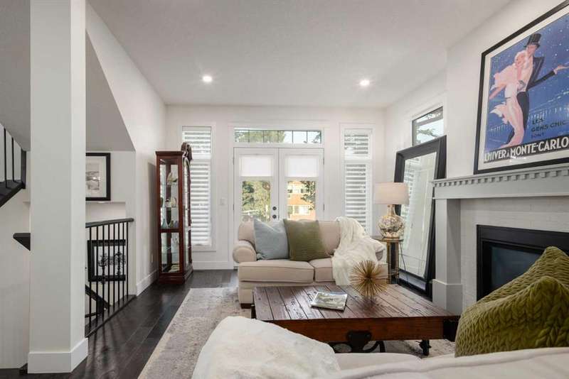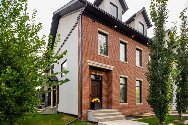 A masterclass in timeless design, this end-unit townhome pairs the charm of a Brooklyn brownstone with the precision of modern craftsmanship. Built by Icon Design and Development Ltd., every element has been thoughtfully curated to create a home that is both refined and functional. The striking red brick façade with black-clad windows sets the tone, while natural light floods through the extra side windows, highlighting coffered ceilings, custom millwork, and rich hardwood floors that flow seamlessly up the stairs to the second level, a premium detail that enhances the sense of sophistication throughout. The main floor is anchored by a statement fireplace with a custom mantle and a designer kitchen featuring bespoke tilework, a sculptural hood fan, and thoughtful built-in storage. On the second level, three bedrooms, a 4-piece family bath and a dedicated laundry room await, including a serene primary suite with tailored built-ins and a spa-like ensuite boasting designer lighting, a glass-encased shower, and exquisite tilework. Above it all, a third-story loft offers a bright and versatile retreat. Perfect as a media room, art studio, office, playroom, or private lounge. The fully finished lower level extends the living space with a spacious recreation room, fourth bedroom, and full bathroom, while central air conditioning ensures year-round comfort. With the convenience of a private single detached garage and a location just minutes from downtown, Marda Loop, and the amenities surrounding Signal Hill, this residence is more than a home, it’s an elevated lifestyle in one of Calgary’s most desirable communities.